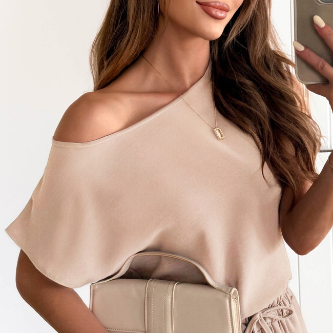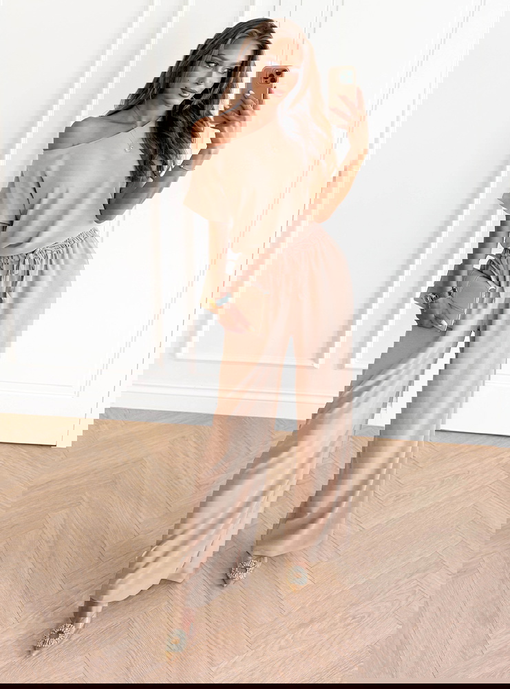 Beżowy komplet bluzka z krótkim rękawem i spodnie Donnea