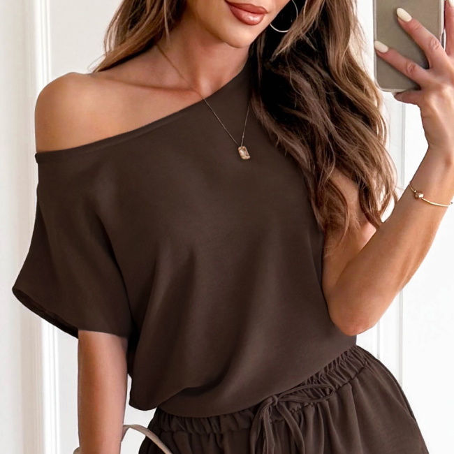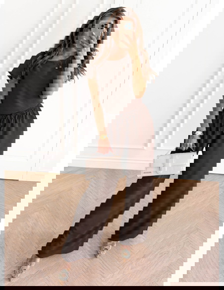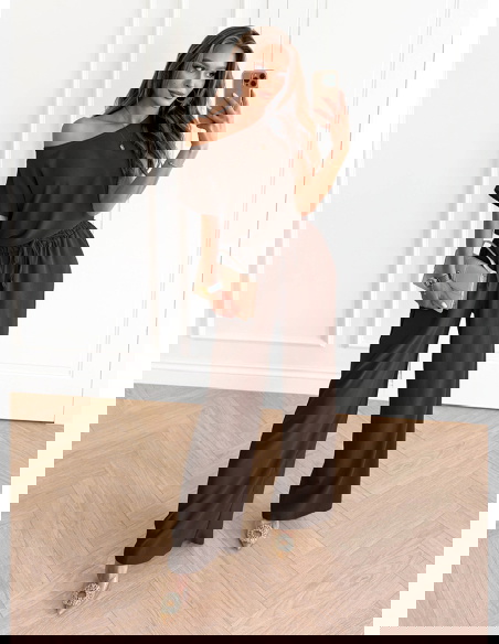 Czekoladowy komplet bluzka z krótkim rękawem i spodnie Donnea