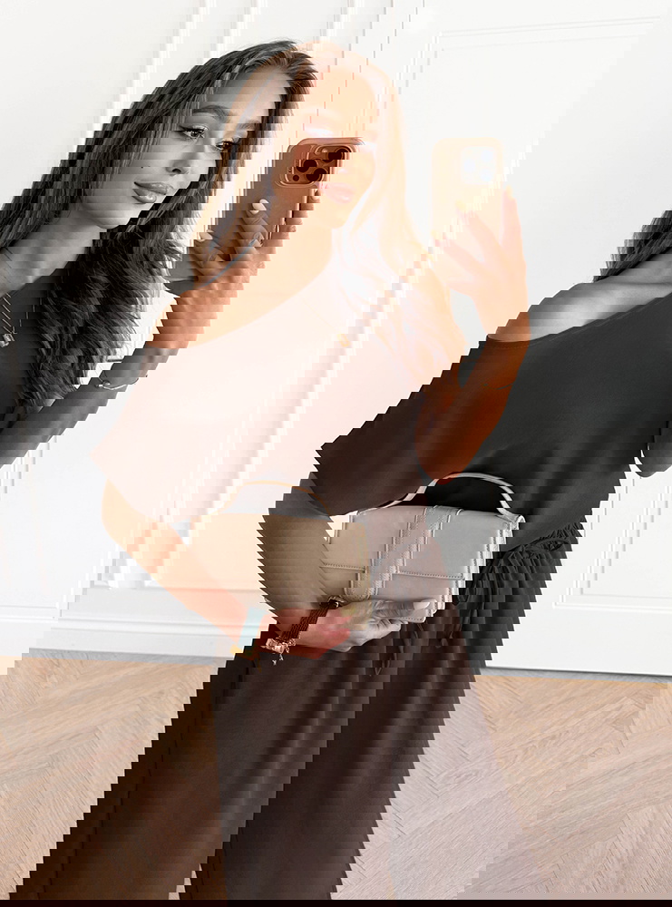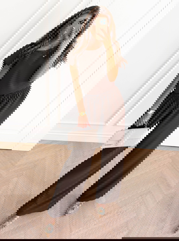 Czekoladowy komplet bluzka z krótkim rękawem i spodnie Donnea to stylizacja, która łączy wygodę i elegancję w prostym, nowoczesnym wydaniu. Głęboki odcień czekolady sprawia, że całość wygląda wyjątkowo szykownie i ponadczasowo. Krótkie rękawy bluzki dodają lekkości, a prosty krój podkreśla uniwersalny charakter zestawu. Spodnie o luźnym fasonie zapewniają komfort i swobodę ruchów, jednocześnie prezentując się bardzo stylowo. To komplet, który idealnie sprawdzi się na wiele okazji – od codziennych spotkań po bardziej eleganckie wyjścia. Neutralny kolor pozwala na łatwe dopasowanie dodatków, zarówno w jasnych, jak i kontrastowych odcieniach. Zestaw doskonale wpisuje się w aktualne trendy, łącząc klasykę z nowoczesnością. Czekoladowy komplet to propozycja dla kobiet, które lubią proste, a zarazem efektowne stylizacje. To model, który można stylizować na wiele sposobów – od casualowych po bardziej eleganckie. Dzięki temu każda kobieta znajdzie w nim coś dla siebie.