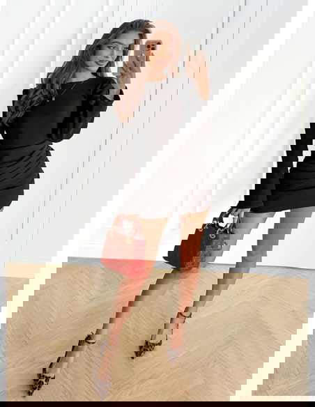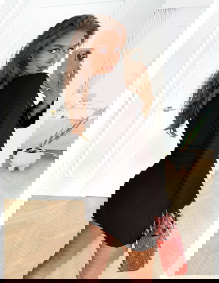 Czarna prążkowana sukienka mini Lovelie to ponadczasowa propozycja, która zawsze prezentuje się stylowo i elegancko. Klasyczny kolor czerni sprawia, że sukienka jest niezwykle uniwersalna. Dopasowany fason pięknie podkreśla sylwetkę i nadaje całości zmysłowego charakteru. Prążkowana struktura materiału dodaje subtelnej nowoczesności i lekkości. Długość mini czyni stylizację kobiecą i odważną, a długie rękawy równoważą proporcje, tworząc harmonijną całość. To model, który świetnie sprawdzi się w różnych sytuacjach – od spotkań towarzyskich po eleganckie wyjścia. Czarna sukienka mini jest podstawą garderoby każdej kobiety. To ubranie, które daje wiele możliwości stylizacji – od klasycznych po bardziej wyraziste. Minimalistyczny krój sprawia, że łatwo ją zestawić z różnymi dodatkami. To sukienka, która nigdy nie wychodzi z mody.