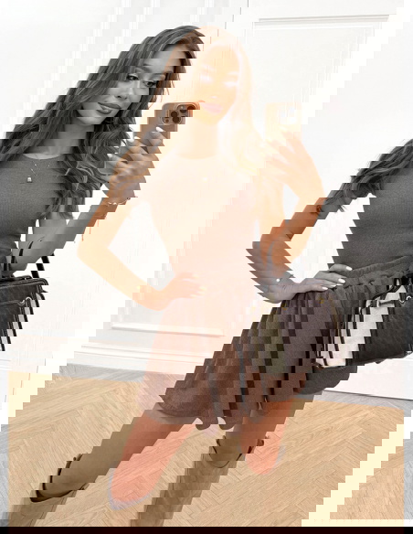 Komplet prążkowany bluzka i szerokie spodenki Cemelkka - mocha mousse to propozycja dla kobiet ceniących subtelną elegancję i wygodę. Kolor mocha mousse, czyli przygaszony brąz z nutą kawy z mlekiem, prezentuje się niezwykle stylowo i nowocześnie. Prążkowany materiał dodaje całości charakteru, a jednocześnie pięknie układa się na sylwetce. Luźna bluzka gwarantuje swobodę ruchów i komfort noszenia. Szerokie spodenki podkreślają lekkość stylizacji i sprawiają, że komplet wygląda wyjątkowo kobieco. To zestaw, który świetnie sprawdzi się w codziennych stylizacjach, ale również podczas bardziej eleganckich wyjść. Jego neutralna kolorystyka pozwala na łatwe łączenie z dodatkami w różnych odcieniach – od jasnych, po kontrastowe. Komplet mocha mousse to idealne połączenie klasyki i nowoczesności. Dzięki uniwersalnemu fasonowi dopasuje się do wielu okazji. To wybór, który łączy modny wygląd z codziennym komfortem.