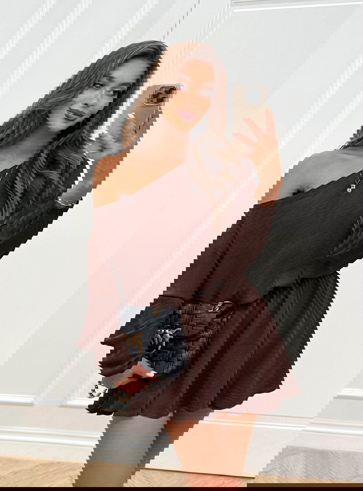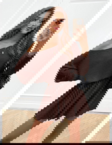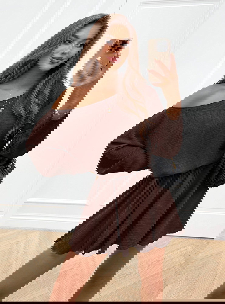 Czekoladowy kombinezon jak sukienka Savvia będzie doskonały na spotkania z przyjaciółmi czy rodzinne wyjścia. Świetnie sprawdzi się podczas wieczornego spaceru lub kolacji w restauracji.