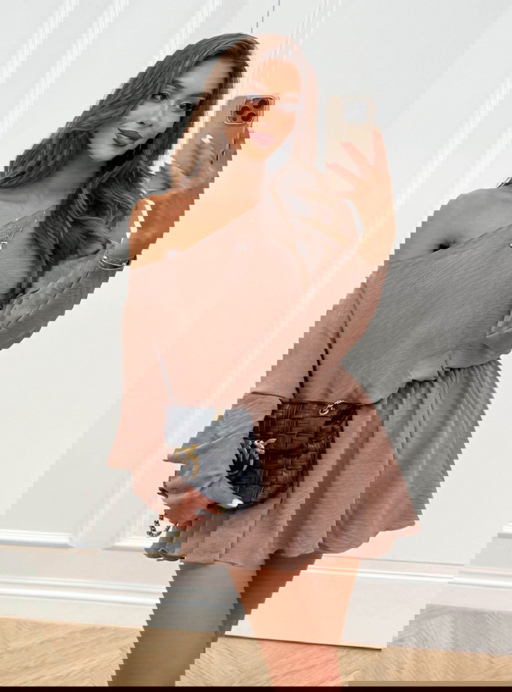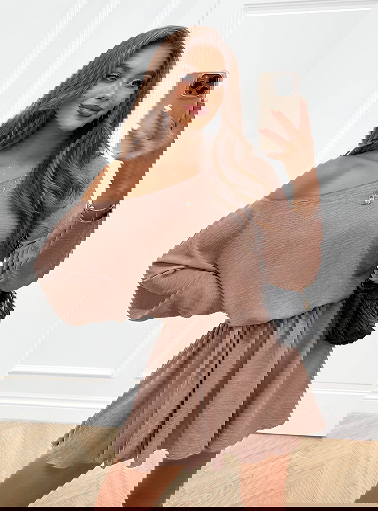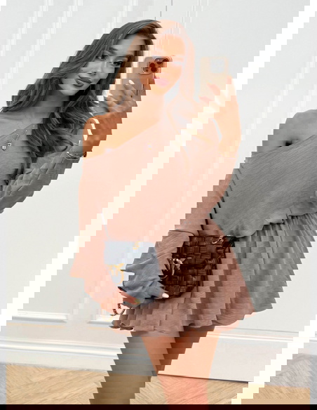 Kombinezon jak sukienka Savvia - mocha mousse to wybór dla kobiet, które cenią wygodę i modny wygląd w jednym. Subtelny kolor sprawia, że całość jest ponadczasowa i łatwa w stylizacji.