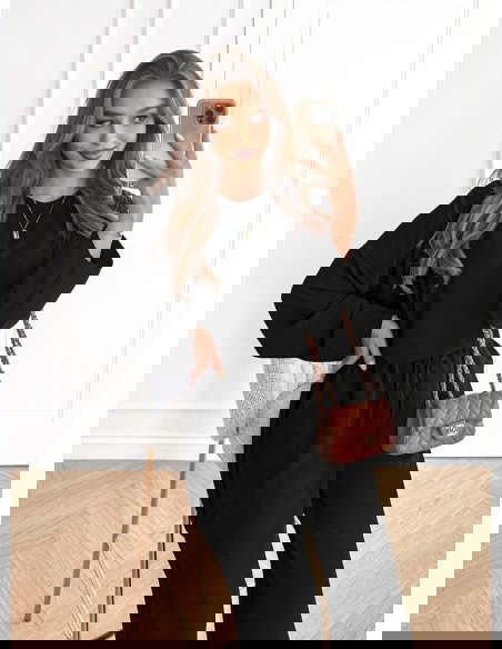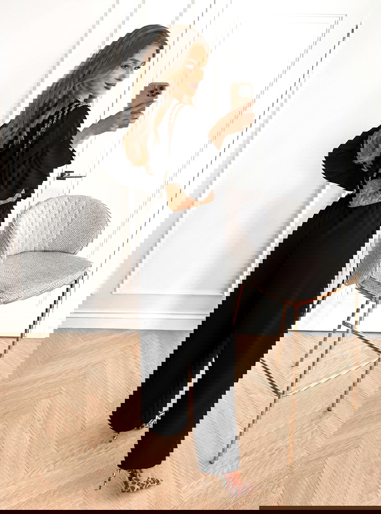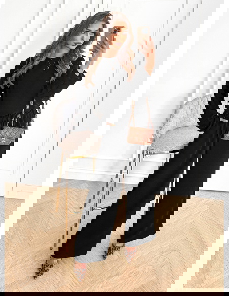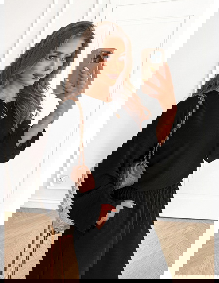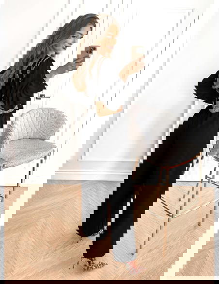 Czarny komplet bluzka i spodnie Zimmia to propozycja, która od pierwszego spojrzenia emanuje elegancją i ponadczasowym stylem. To zestaw, który doskonale łączy w sobie klasykę z nowoczesną lekkością. Jego uniwersalny charakter sprawia, że sprawdzi się w wielu sytuacjach. Czerń zawsze prezentuje się szykownie, a tutaj dodatkowo podkreśla smukłość sylwetki. Bluzka o swobodnym kroju dodaje wygody, a jednocześnie wygląda bardzo stylowo. Spodnie z szeroką nogawką optycznie wydłużają nogi i nadają całości wyjątkowego charakteru. To komplet, który nie tylko prezentuje się efektownie, ale także daje poczucie komfortu. Minimalistyczna forma sprawia, że łatwo można go zestawiać z różnymi dodatkami. To wybór dla kobiet, które chcą wyglądać modnie, a jednocześnie czuć się swobodnie. Każdy szczegół tego zestawu podkreśla jego elegancki, a zarazem nowoczesny styl.