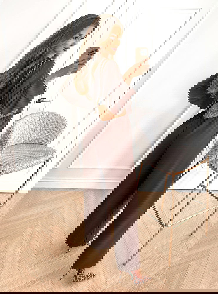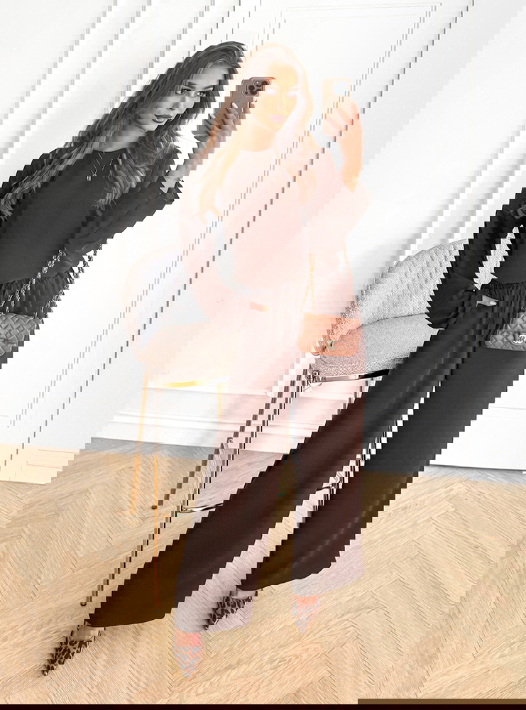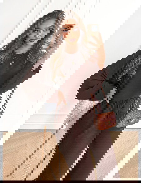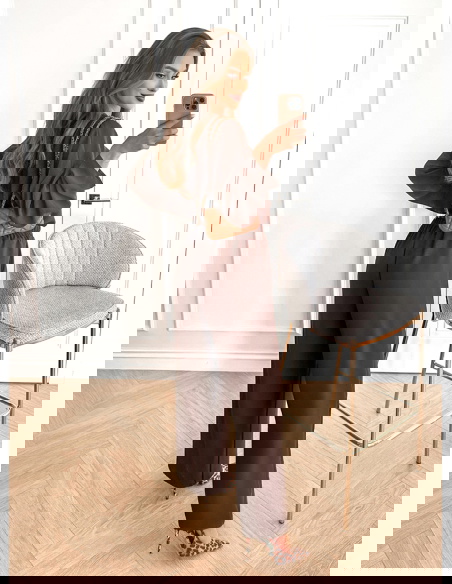 Czekoladowy komplet bluzka i spodnie Zimmia to propozycja, która łączy w sobie elegancję i pełen komfort. Głęboki odcień brązu nadaje mu wyjątkowego, ponadczasowego charakteru. To zestaw, który sprawdzi się w wielu sytuacjach, od codziennych spotkań po bardziej eleganckie okazje. Luźna bluzka o klasycznym kroju prezentuje się swobodnie i stylowo. Spodnie z szerokimi nogawkami pięknie układają się na sylwetce, tworząc efekt lekkości i wydłużając optycznie nogi. Całość wygląda nowocześnie, a jednocześnie niezwykle klasycznie. To wybór idealny dla kobiet, które cenią sobie styl w prostym, ale wyrafinowanym wydaniu. Kolor czekolady wprowadza ciepło i subtelną elegancję. Komplet ten pozwala tworzyć różnorodne stylizacje – zarówno casualowe, jak i bardziej eleganckie. To doskonała propozycja dla kobiet, które chcą wyglądać z klasą, nie rezygnując z wygody.