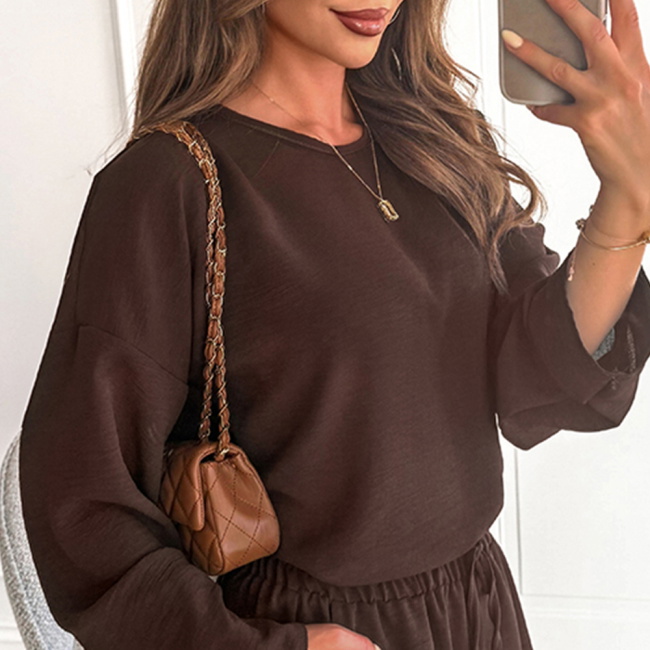 Czekoladowy komplet bluzka i spodnie Zimmia