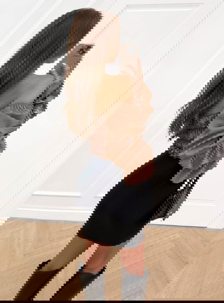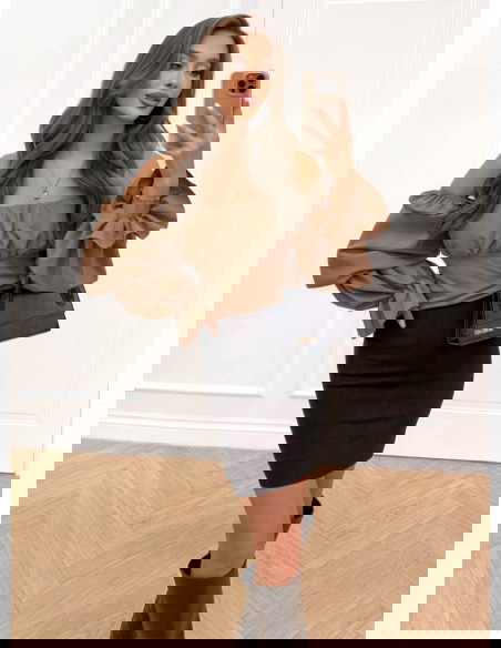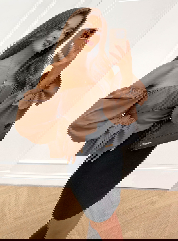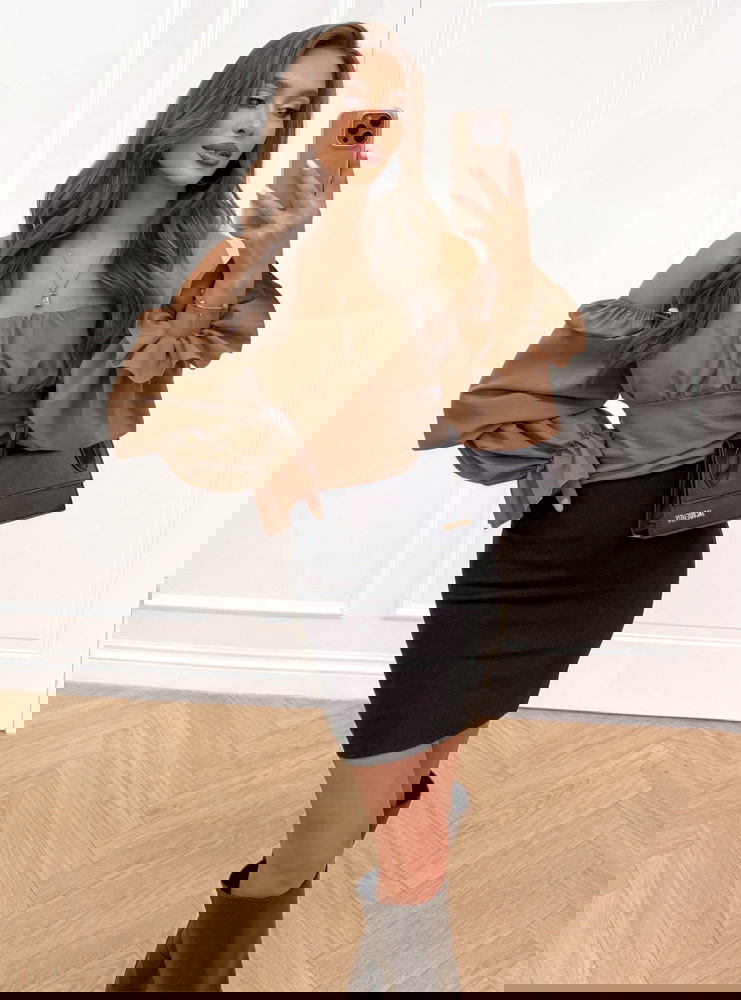 Bluzka typu hiszpanka Rebevra - mocha mousse sprawdzi się idealnie na romantyczną kolację lub randkę. To świetny wybór na spotkanie z przyjaciółmi w eleganckiej restauracji.