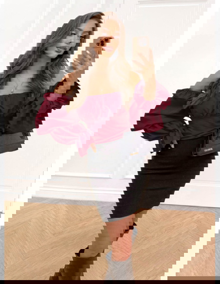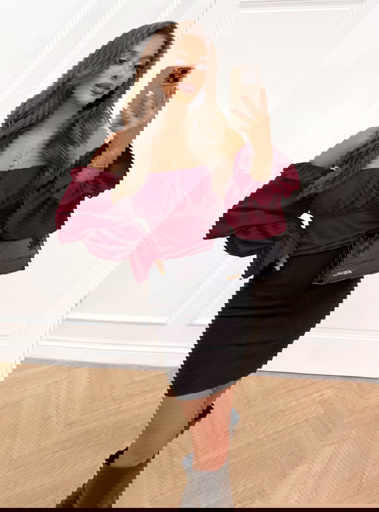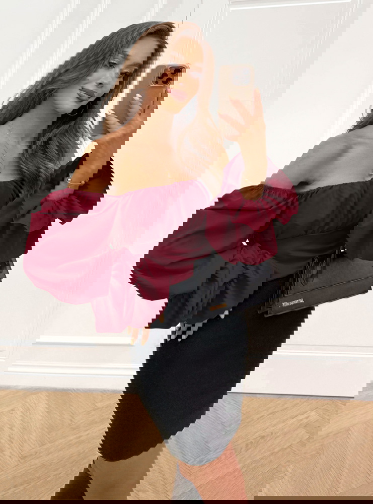 Bordowa bluzka typu hiszpanka Rebevra to połączenie elegancji i modnego charakteru. Bufiaste rękawy i odkryte ramiona sprawiają, że prezentuje się niezwykle efektownie.