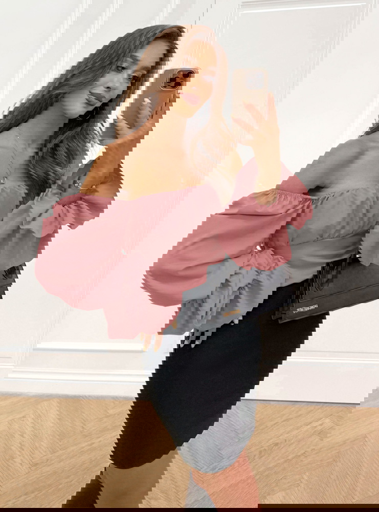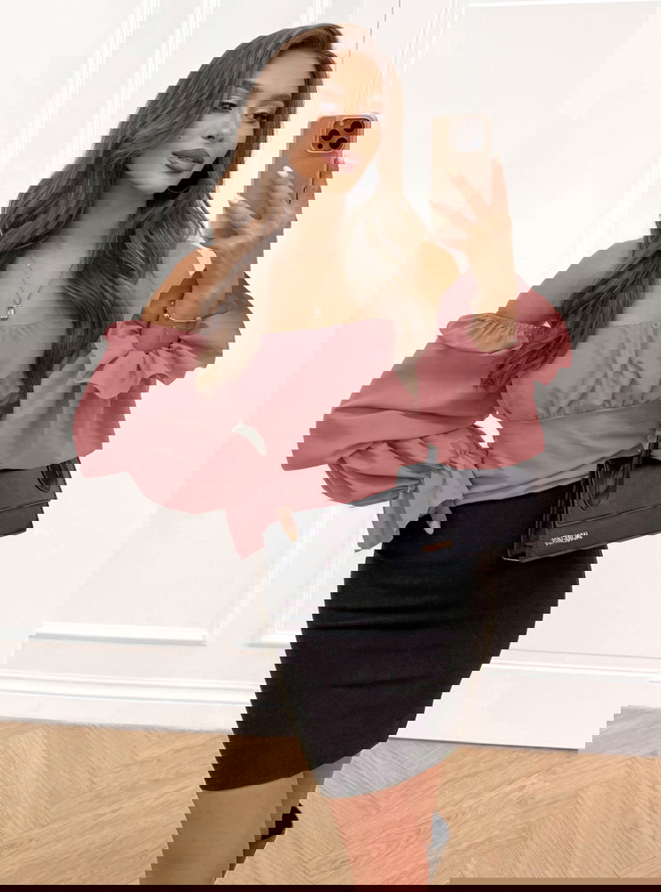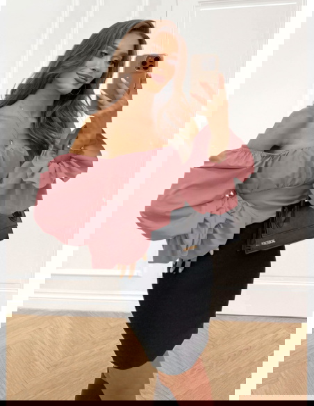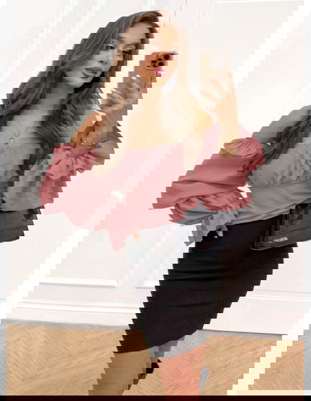 Bluzka typu hiszpanka Rebevra - brudny róż to model, który łączy w sobie kobiecość i elegancję. Jej efektowne rękawy oraz odkryte ramiona sprawiają, że prezentuje się niezwykle stylowo.