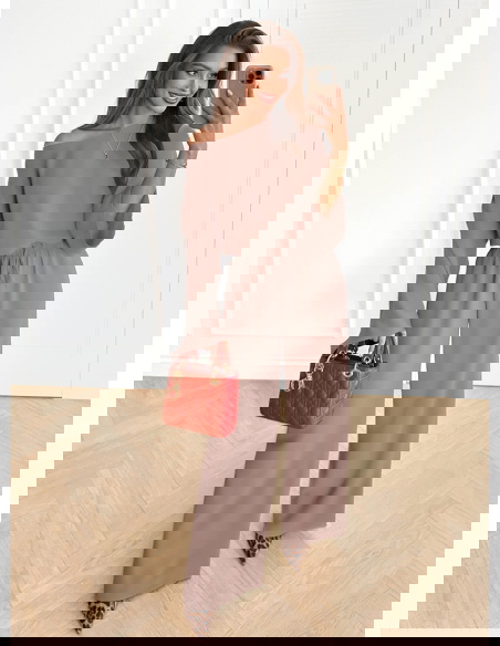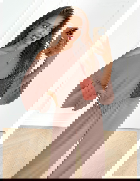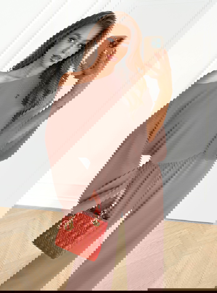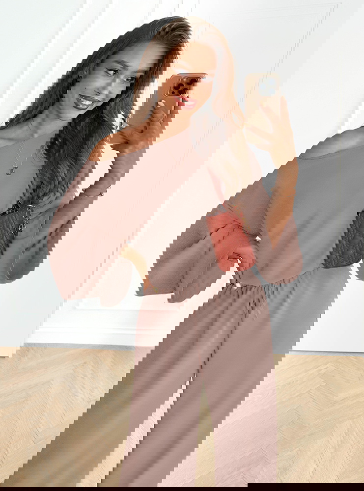 Komplet koszulka i spodnie Marrinet - mocha mousse to propozycja, która zachwyca prostotą i elegancją w jednym. To zestaw stworzony dla kobiet, które lubią wyglądać stylowo, nie rezygnując z wygody. Delikatny odcień mocha mousse nadaje całości subtelności i ponadczasowego charakteru. Luźniejsza góra z długim rękawem pięknie układa się na sylwetce, dodając jej lekkości. Spodnie o szerokich nogawkach optycznie wydłużają nogi i sprawiają, że całość prezentuje się nowocześnie. To komplet, który doskonale wpisuje się w aktualne trendy i stanowi świetną bazę do wielu stylizacji. Możesz go nosić zarówno w wersji codziennej, jak i eleganckiej. Wystarczy zmienić dodatki, aby całkowicie odmienić charakter zestawu. To propozycja, która z pewnością przyciągnie uwagę i sprawi, że poczujesz się wyjątkowo.