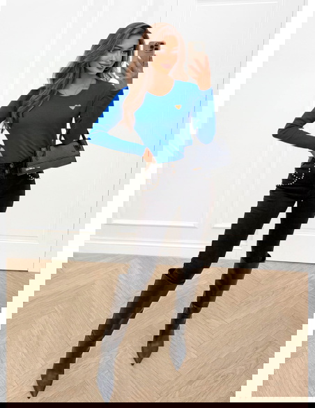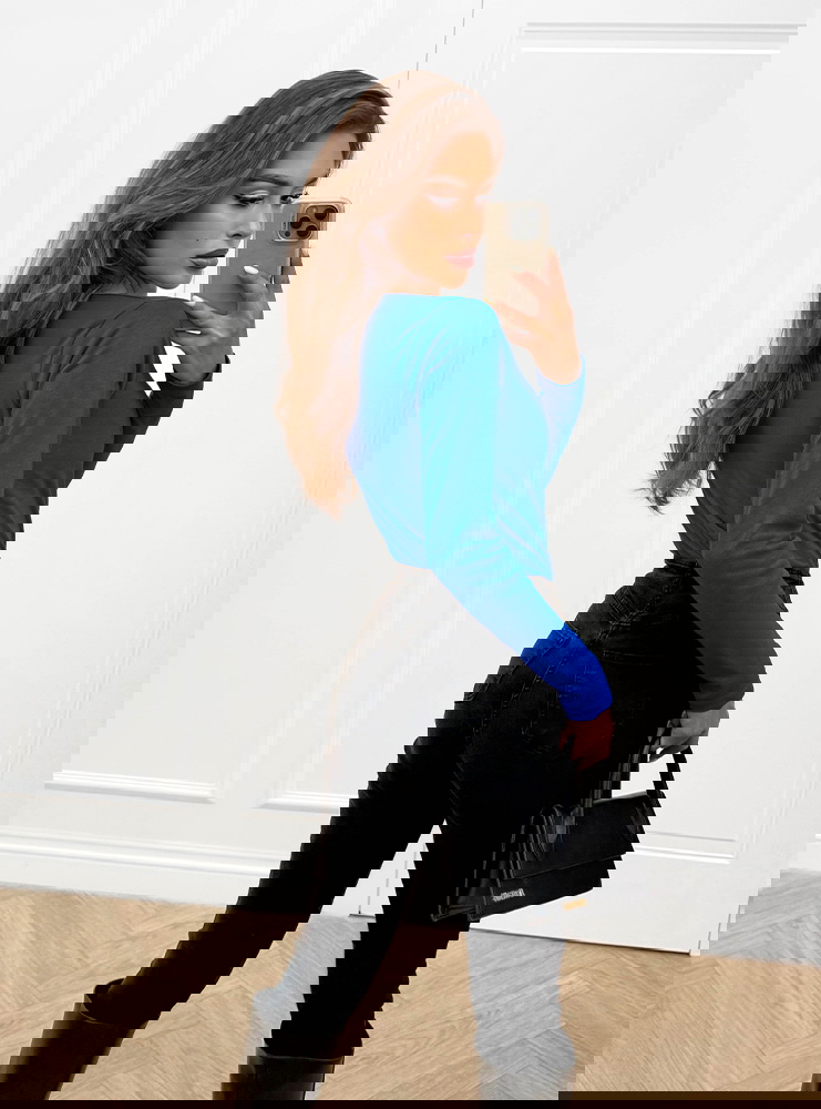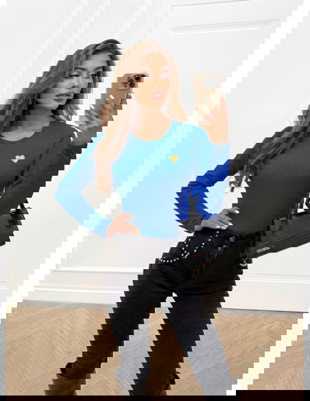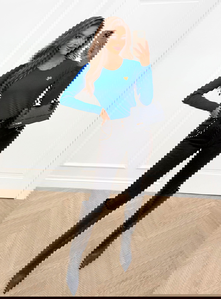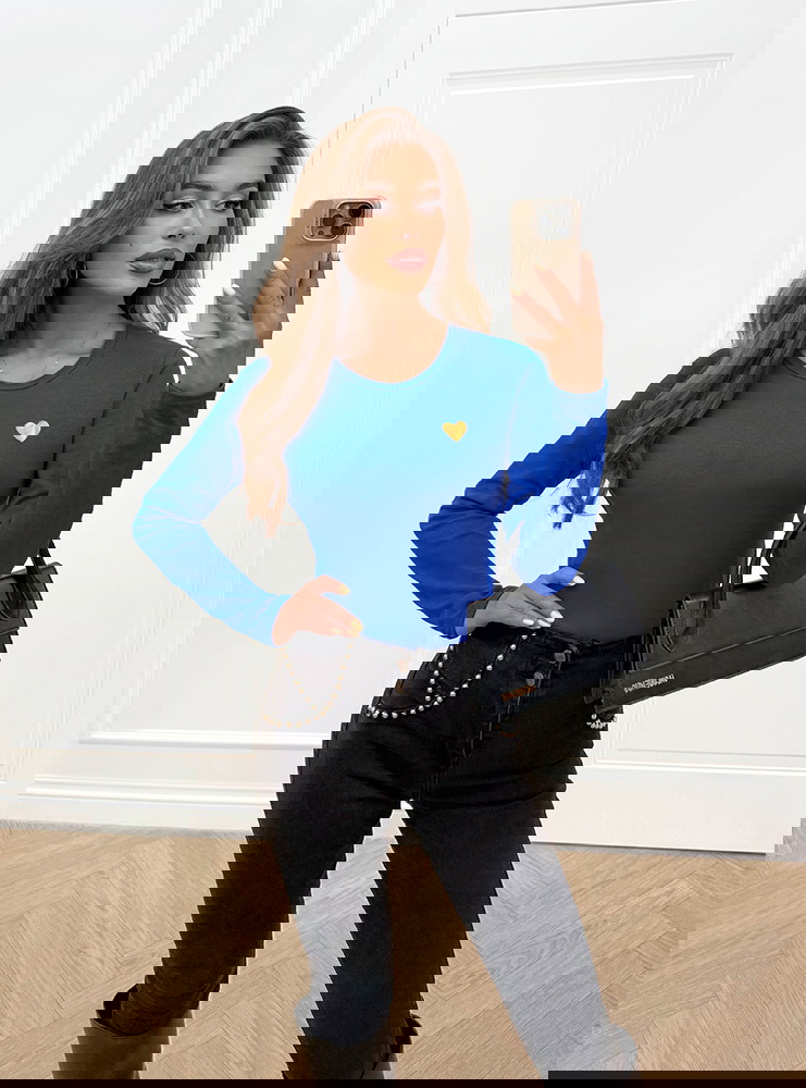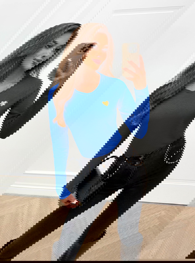Chabrowa koszulka na długi rękaw z ozdobnym nadrukiem Burnice to modna i uniwersalna propozycja, która ożywi każdą stylizację. Jej intensywny, głęboki kolor sprawia, że całość prezentuje się wyjątkowo i przyciąga spojrzenia. Klasyczny krój dopasowuje się do sylwetki, podkreślając jej atuty, a jednocześnie zapewnia wygodę w noszeniu. Subtelny nadruk w formie złotego serduszka dodaje jej uroku i delikatnej elegancji. To detal, który sprawia, że koszulka nabiera wyjątkowego charakteru, mimo prostoty fasonu. To model, który świetnie sprawdzi się zarówno w casualowych, jak i bardziej dopracowanych zestawach. Możesz ją zestawić z jeansami, spódnicą czy eleganckimi spodniami – zawsze będzie wyglądać stylowo. To koszulka, która łączy wygodę i modny wygląd w jednym. Wybór idealny dla kobiet, które lubią proste fasony przełamane subtelnymi, eleganckimi akcentami.