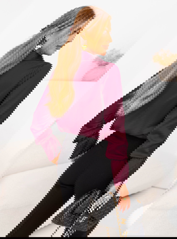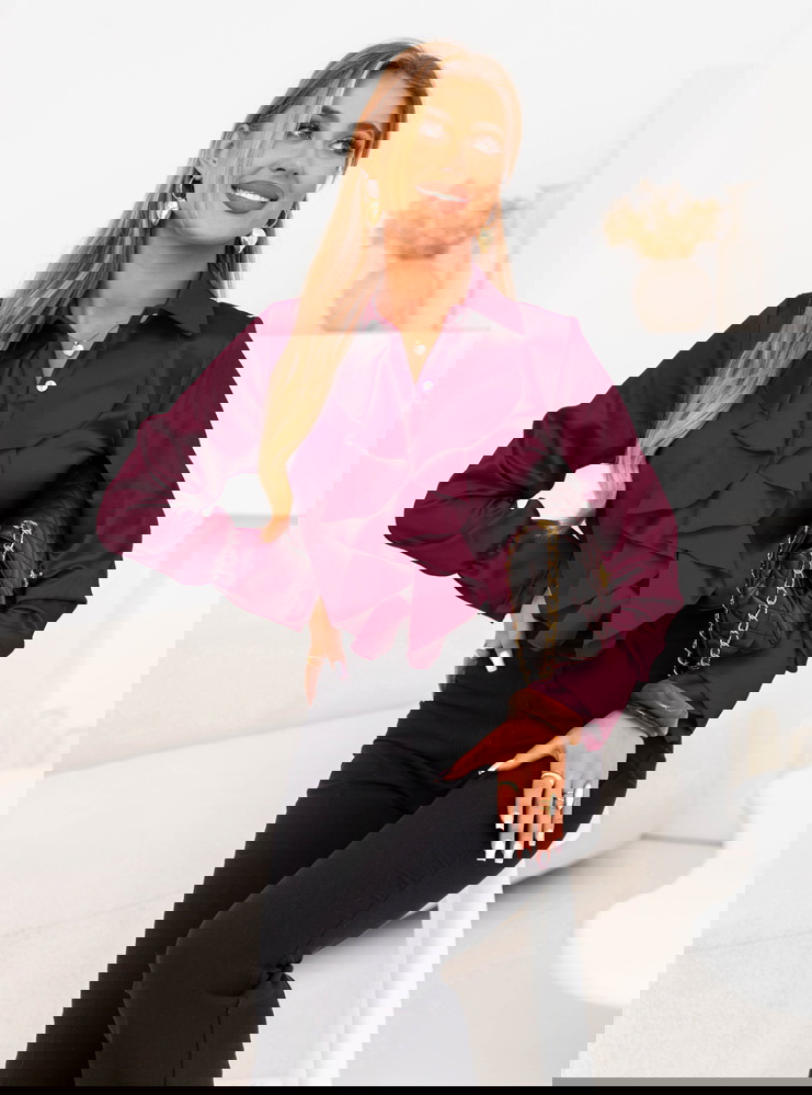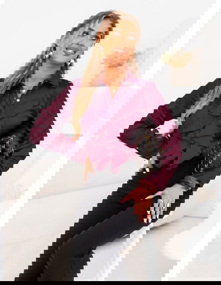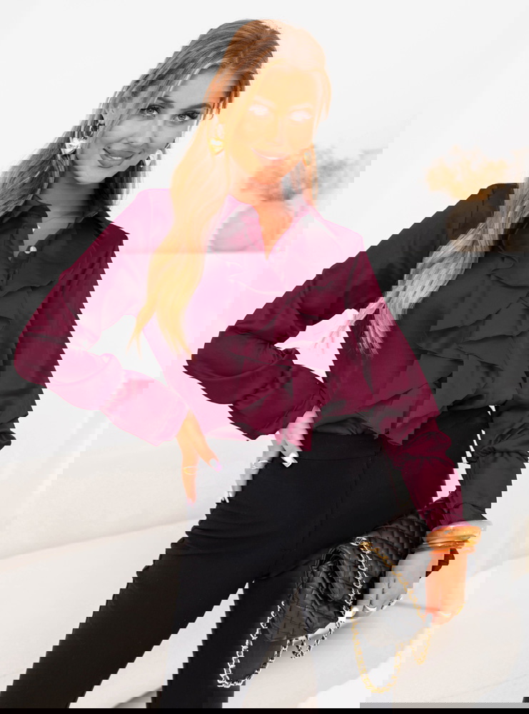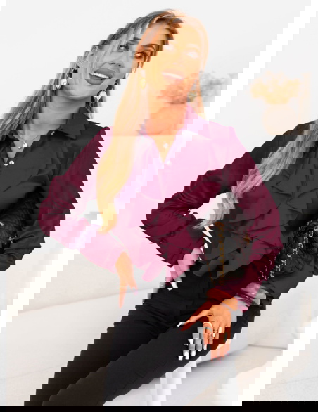 Bordowa koszula z żabotem Roxanne to połączenie elegancji, klasy i kobiecego wdzięku. Jej wyjątkowy detal w postaci żabotu sprawia, że wyróżnia się spośród innych modeli.