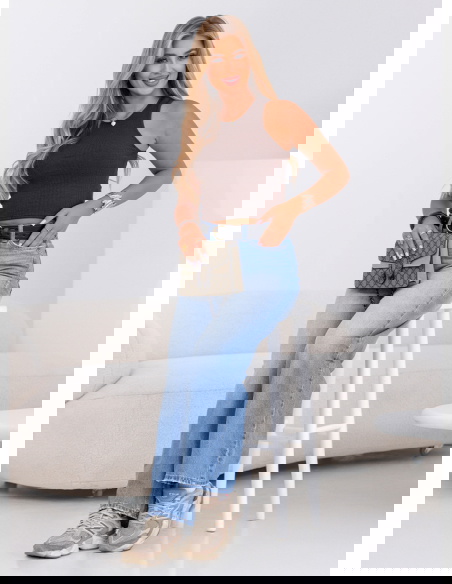 Czekoladowy prążkowany top na ramiączkach Carolina to stylowa i ponadczasowa propozycja, która powinna znaleźć się w każdej garderobie. Jego głęboki kolor dodaje całości elegancji i podkreśla kobiecy charakter stylizacji. Dopasowany krój pięknie eksponuje sylwetkę, a jednocześnie zapewnia wygodę i swobodę ruchów. Prążkowana struktura materiału nadaje topowi modnego, nowoczesnego wyglądu. To model, który sprawdzi się w wielu odsłonach – zarówno w codziennych, jak i bardziej eleganckich zestawieniach. Dzięki klasycznej formie i uniwersalnej kolorystyce z łatwością dopasujesz go do różnych elementów garderoby. Top świetnie prezentuje się zarówno solo, jak i w połączeniu z marynarką czy swetrem. To idealny wybór dla kobiet, które cenią prostotę połączoną z nutą wyrazistości. W tym topie zawsze będziesz wyglądać modnie i pewnie siebie.