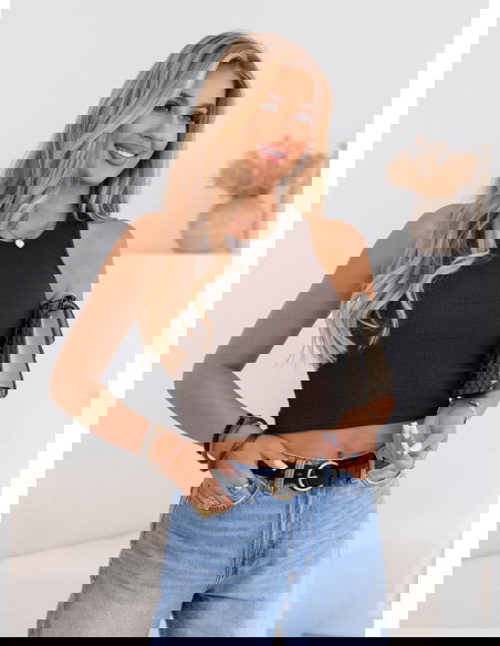 Czekoladowy prążkowany top na ramiączkach Carolina to idealny wybór dla kobiet ceniących klasykę w nowoczesnym wydaniu. Jego dopasowany fason i prążkowana faktura podkreślają sylwetkę i dodają stylizacji charakteru.