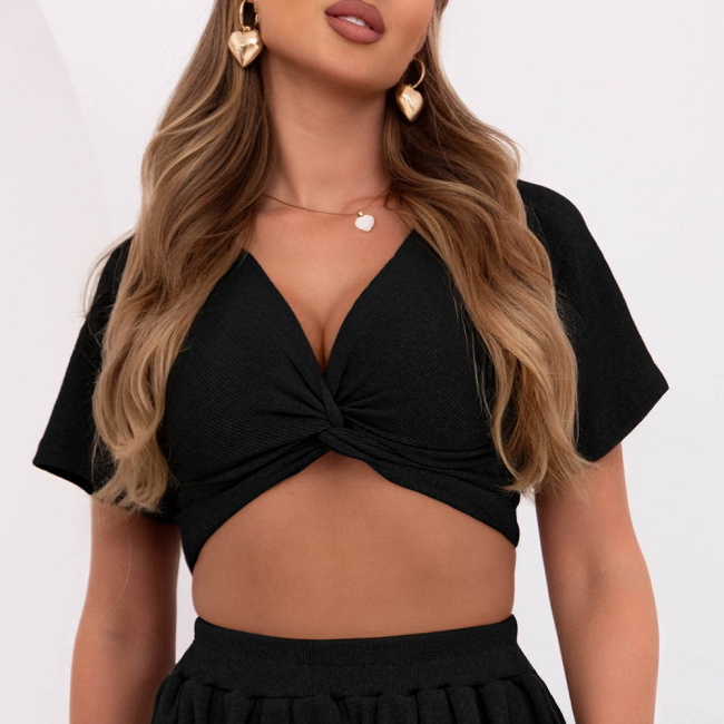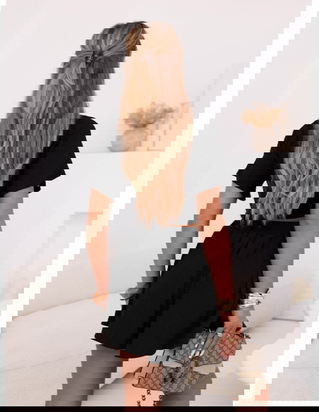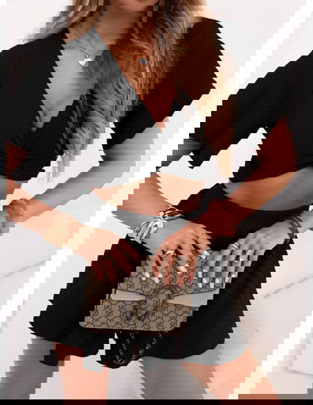 Czarny komplet prążkowany top i szerokie spodenki Charllotte