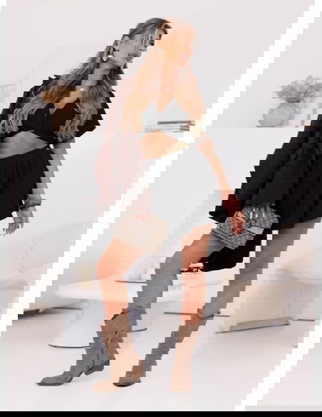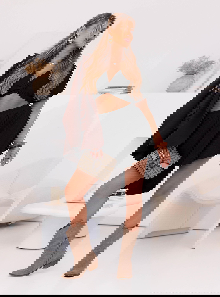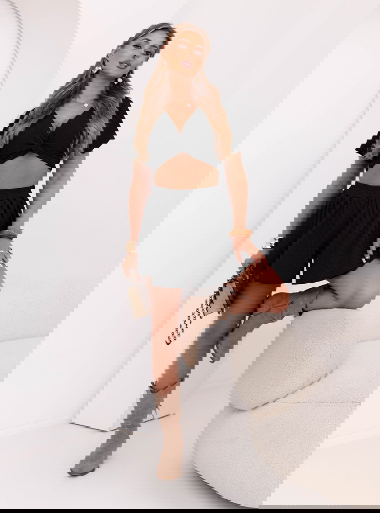 Czarny komplet prążkowany top i szerokie spodenki Charllotte to wybór, który od razu przyciąga spojrzenia. Ten zestaw to idealne połączenie wygody i kobiecego wdzięku. Jego prostota sprawia, że świetnie wpisuje się w najnowsze trendy. Top z efektownym węzłem pięknie podkreśla sylwetkę i dodaje stylizacji charakteru. Szerokie spodenki nadają całości lekkości i swobody, a jednocześnie wyglądają niezwykle nowocześnie. Ten komplet to opcja dla kobiet, które lubią czuć się atrakcyjnie, ale też komfortowo. Wyróżnia się uniwersalnością – sprawdzi się zarówno na co dzień, jak i na wyjątkowe okazje. Minimalistyczny krój w czerni tworzy bazę do wielu modowych eksperymentów. To komplet, który pozwoli Ci stworzyć modny i przemyślany look bez wysiłku. Jeśli szukasz czegoś, co doda Ci pewności siebie i przy tym będzie wygodne, to właśnie znalazłaś swój ideał.