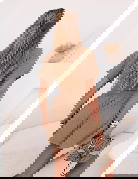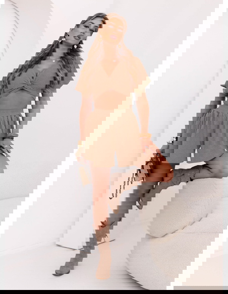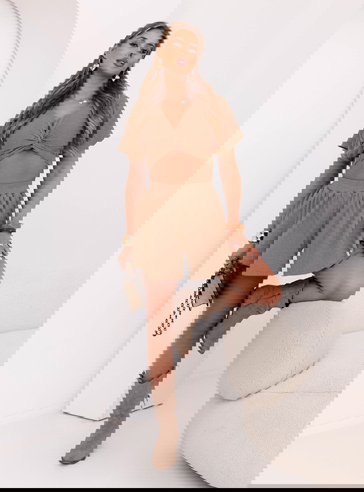 Beżowy komplet prążkowany top i szerokie spodenki Charllotte