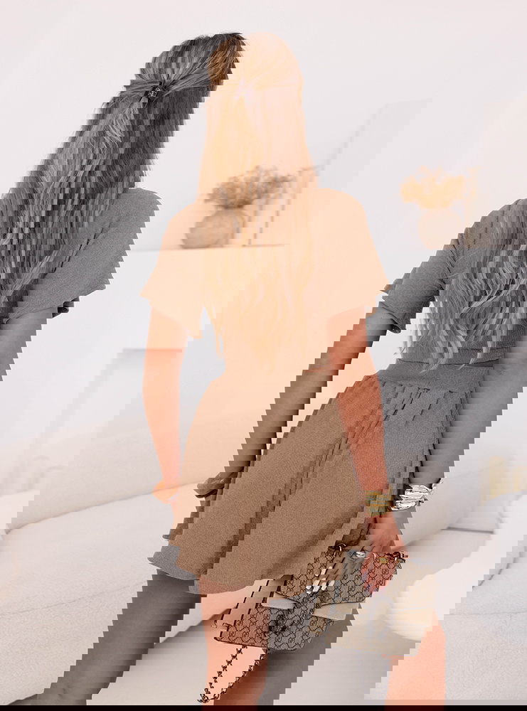 Beżowy komplet prążkowany top i...