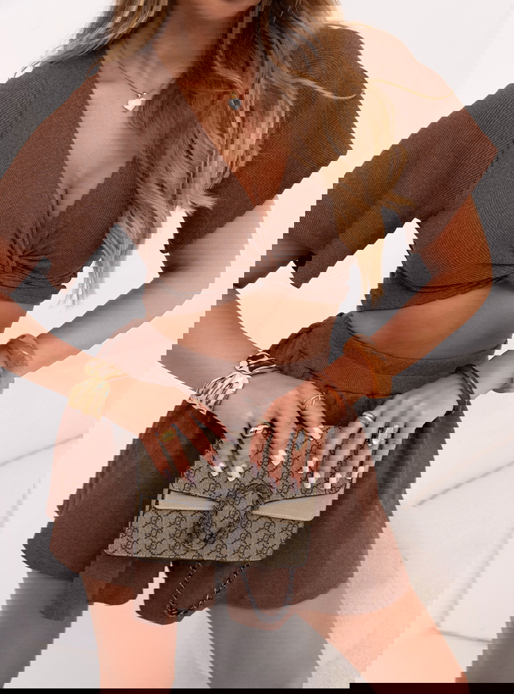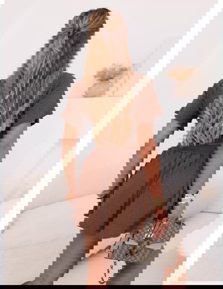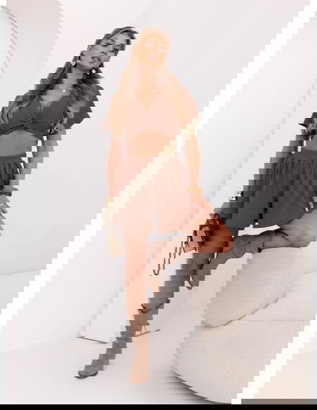 Komplet prążkowany top i szerokie spodenki Charllotte - mocha mousse
