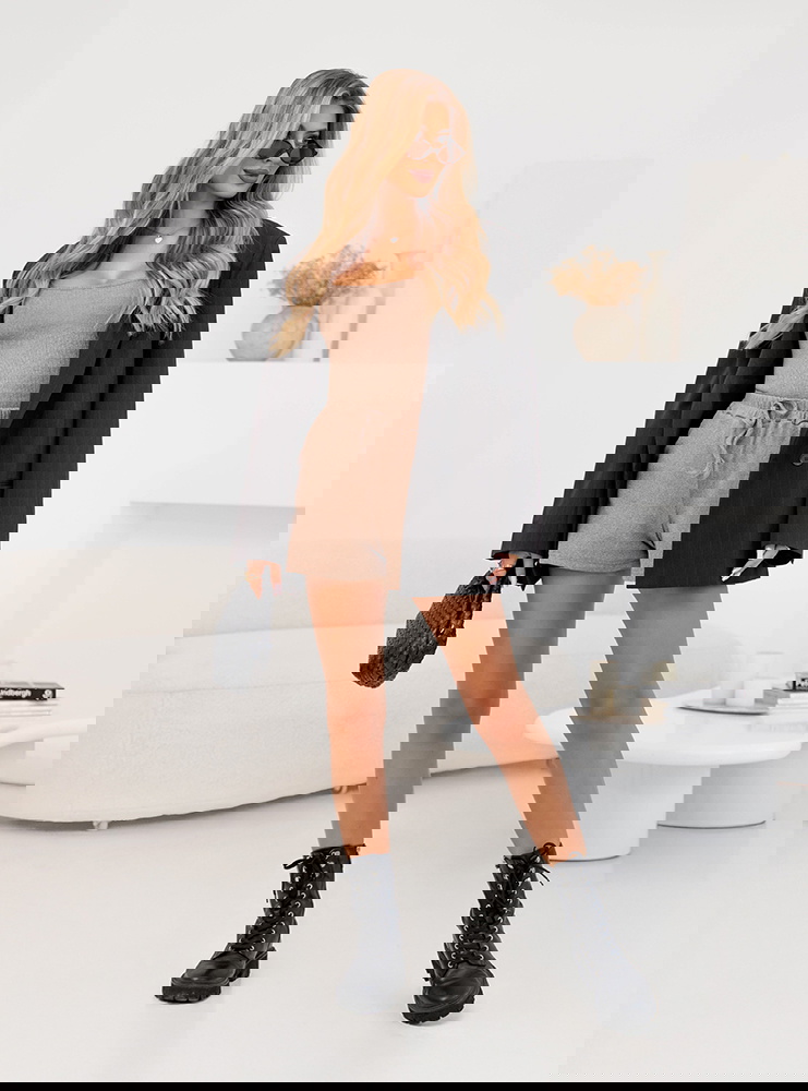 Beżowy prążkowany komplet bluzka na ramiączkach + spodenki Hunnie to zestaw, który łączy wygodę ulubionej dzianiny z prostą, bardzo kobiecą linią. Prążkowany top na cienkich ramiączkach miękko dopasowuje się do sylwetki, podkreślając ramiona i dekolt, a jednocześnie nie krępuje ruchów. Hunnie to wszechstronny wybór na off-duty: poranne sprawy na mieście, spacer po plaży, city break, weekend u znajomych czy dłuższą podróż. Z kardiganem lub koszulą lnianą tworzy lekki look na chłodniejszy poranek; z kurtką jeansową i mokasynami – styl smart casual na kawę w mieście. Na wakacjach noś go z klapkami i koszykiem, wieczorem dodaj marynarkę i mule na obcasie – od razu nabiera bardziej „wyjściowego” charakteru.