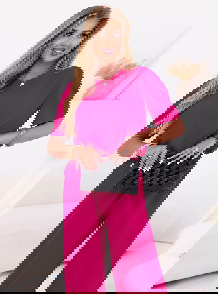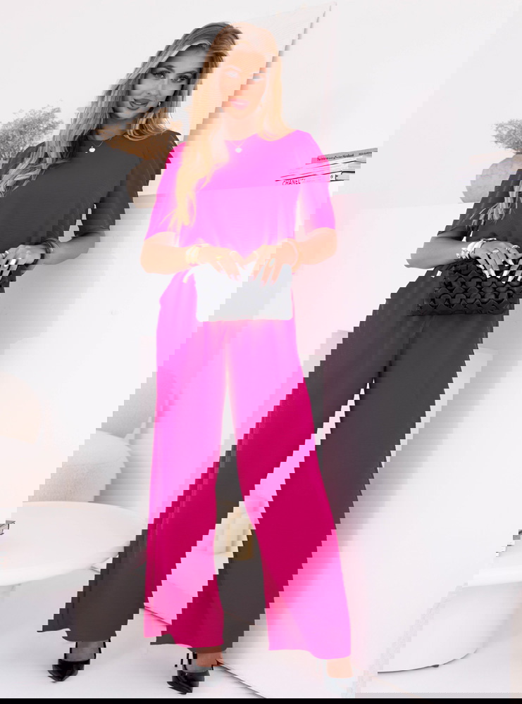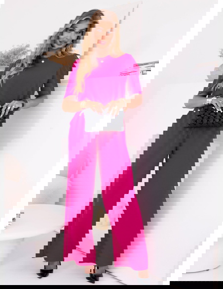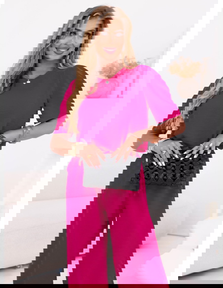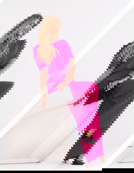Komplet bluzka i szerokie spodnie z wiązaniem Lloydine - fuksja