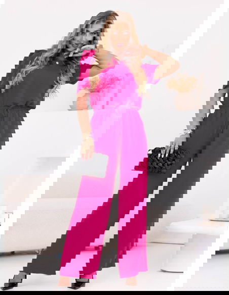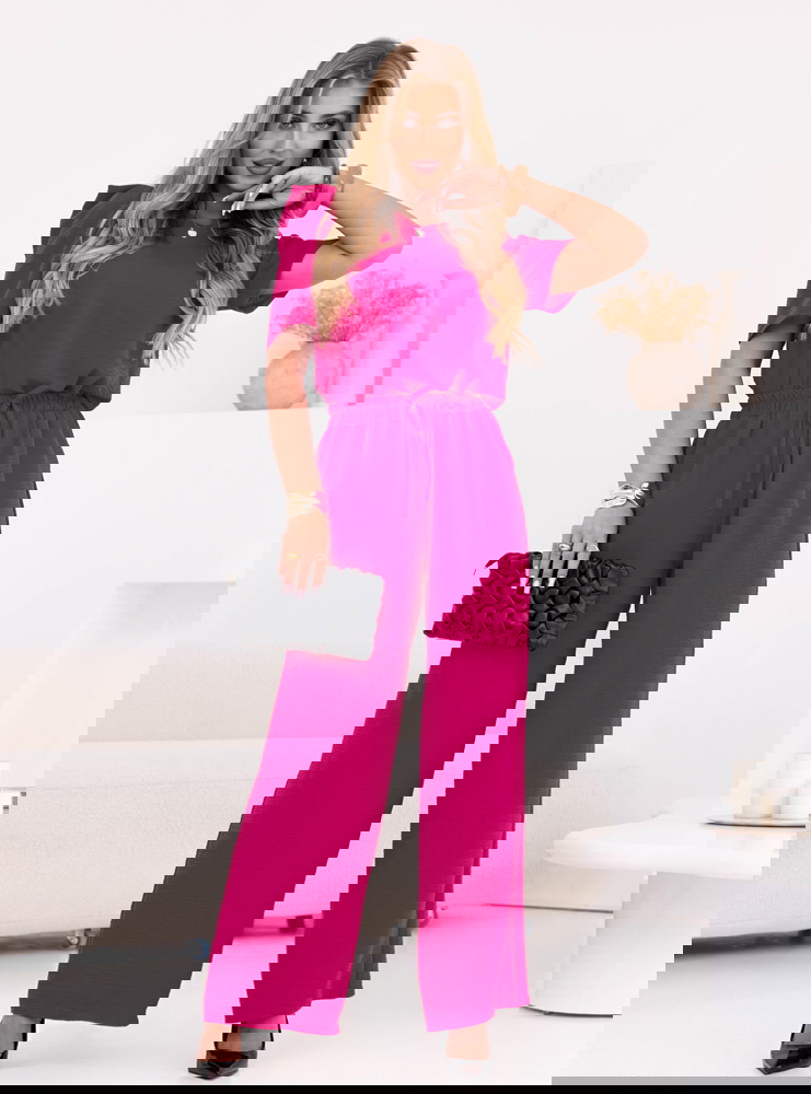 Komplet bluzka i szerokie spodnie z wiązaniem Lloydine - fuksja to idealna propozycja dla kobiet, które lubią łączyć elegancję z wygodą. Intensywny odcień fuksji od razu przyciąga uwagę i dodaje energii każdej stylizacji. To zestaw, który pięknie podkreśla kobiecy styl, a jednocześnie zapewnia pełną swobodę ruchów. Luźna bluzka z krótkim rękawem świetnie współgra z szerokimi spodniami, tworząc spójną całość. Wiązanie w talii pozwala podkreślić figurę i nadaje sylwetce lekkości. To komplet, który sprawdzi się w wielu sytuacjach – od codziennych po bardziej eleganckie. Jego nowoczesny charakter sprawia, że możesz w nim wyglądać stylowo bez wysiłku. To propozycja, która łączy wygodę, modny design i kobiecy urok. Dzięki niemu Twoja garderoba zyska odważny i wyjątkowy akcent.
