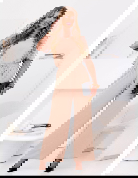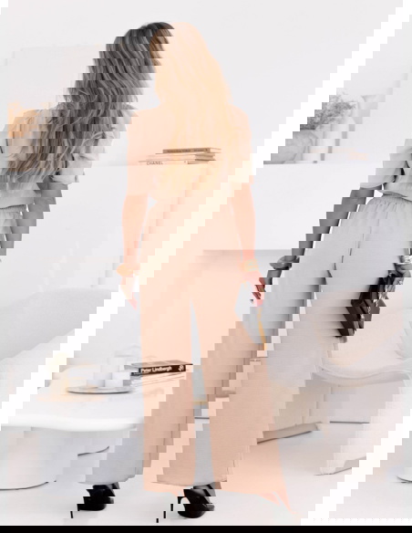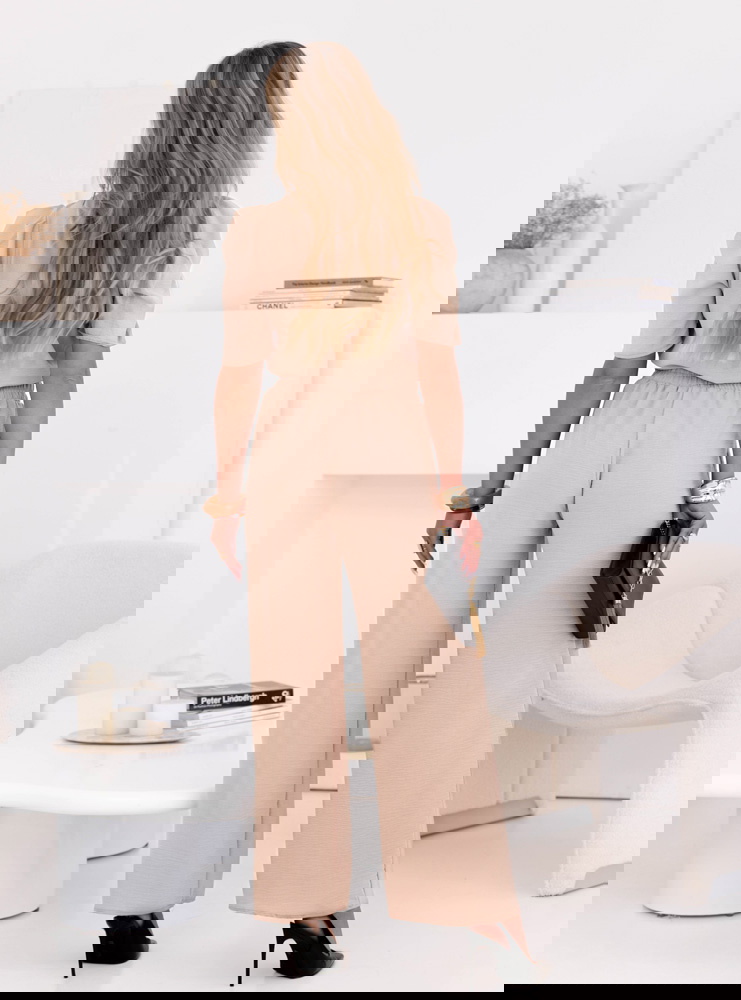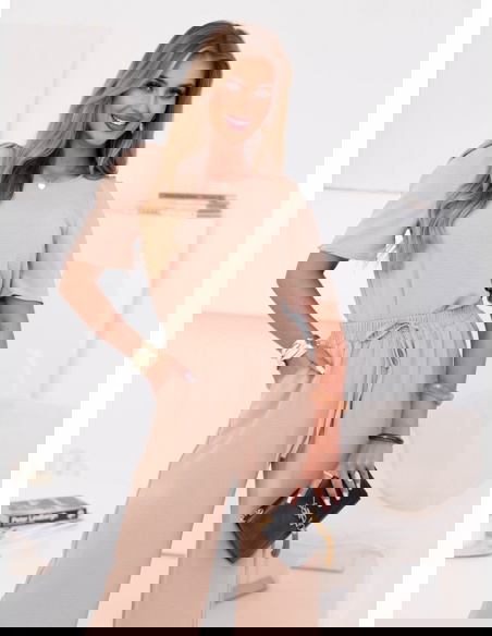 Beżowy komplet bluzka i szerokie spodnie z wiązaniem Lloydine