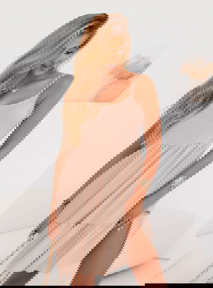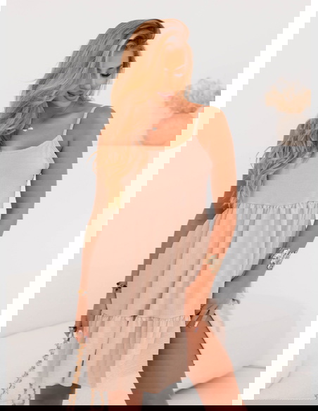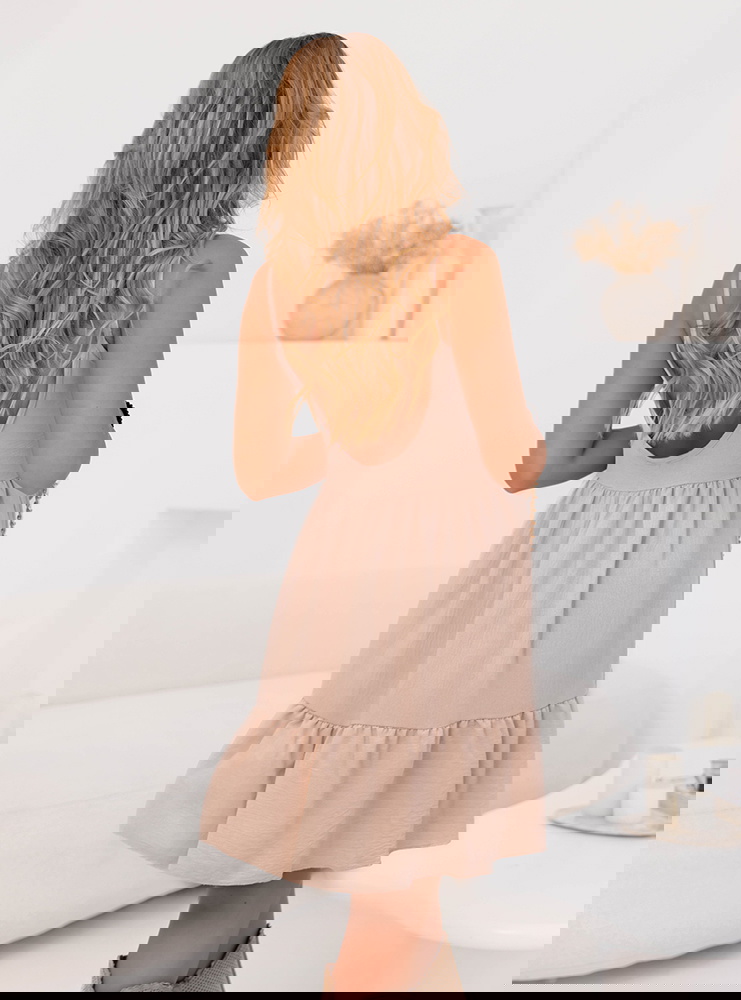 Beżowa rozkloszowana sukienka na ramiączkach Finnia