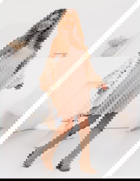 Beżowa rozkloszowana sukienka na ramiączkach Finnia to propozycja, która od razu przyciąga uwagę swoją prostotą i subtelnym urokiem. To model, który świetnie podkreśla kobiecą sylwetkę, a jednocześnie zapewnia pełen komfort noszenia. Delikatne ramiączka nadają całości lekkości i dziewczęcego wdzięku. Rozkloszowany krój sprawia, że sukienka pięknie układa się przy każdym ruchu. Jej beżowy odcień doskonale wpisuje się w aktualne trendy, a jednocześnie pozostaje ponadczasowy. To fason, który nie potrzebuje wielu dodatków, aby prezentować się efektownie. Subtelny charakter sukienki sprawia, że idealnie dopasuje się do różnych stylizacji. Możesz nosić ją zarówno w wersji eleganckiej, jak i bardziej codziennej. To uniwersalny model, który świetnie wygląda niezależnie od okazji. Jeśli szukasz sukienki, która doda Ci świeżości i lekkości, ta propozycja będzie doskonałym wyborem.