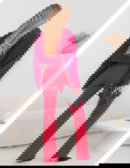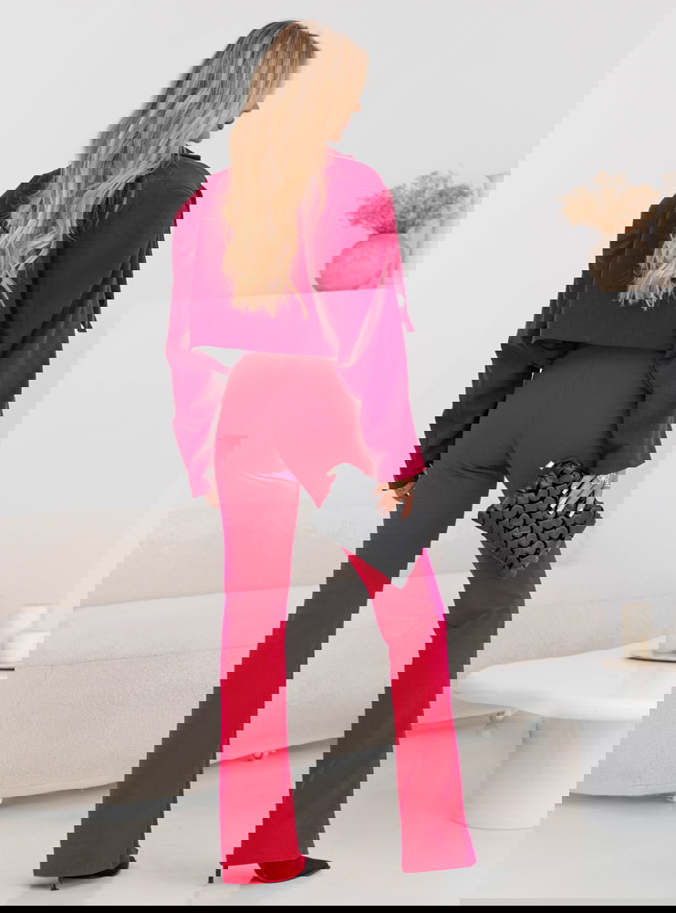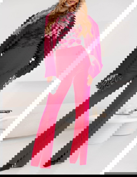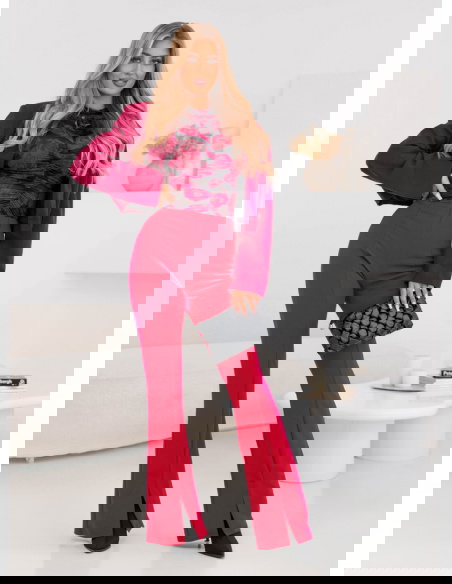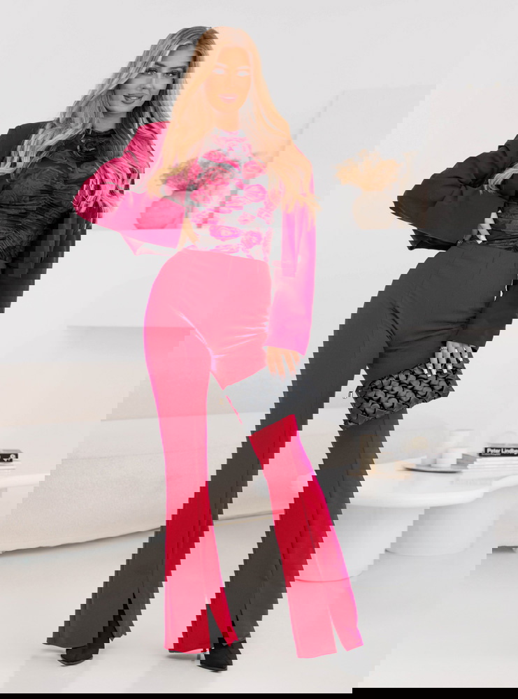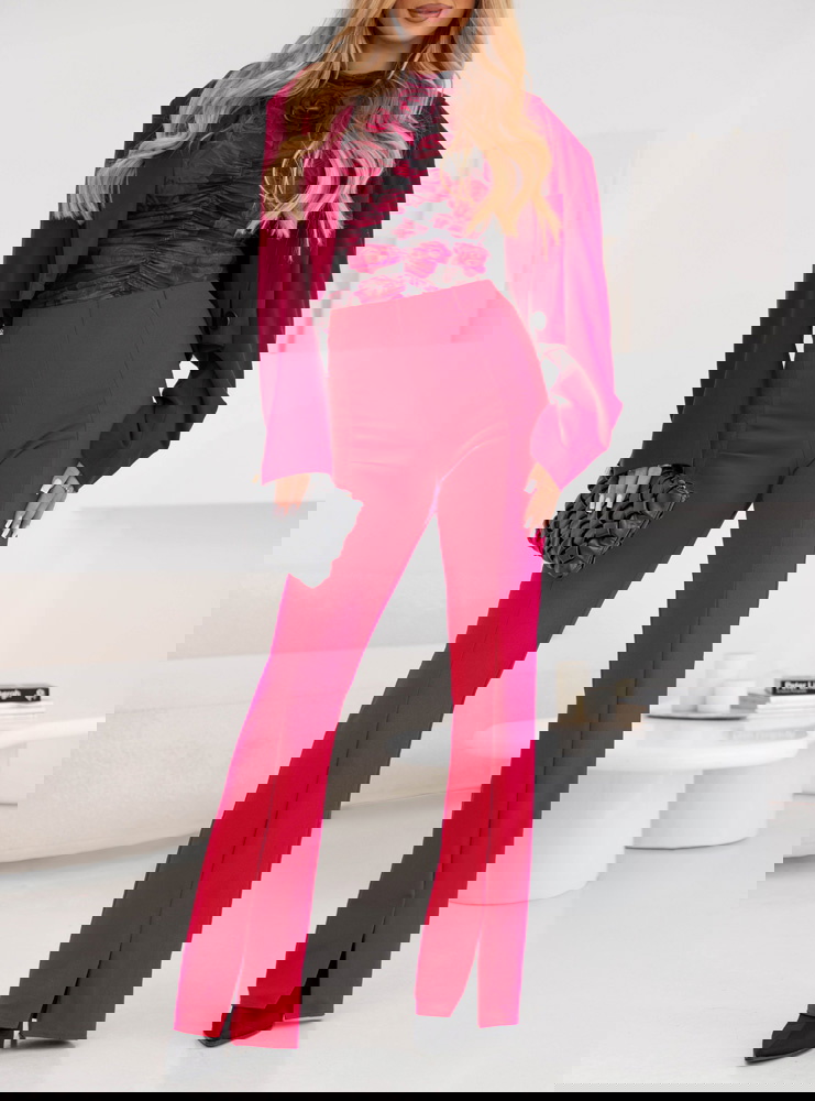 Malinowe spodnie typu dzwony z rozcięciami Karinda doskonale sprawdzą się na wieczorne wyjścia, kiedy chcesz wyglądać efektownie i z klasą. Będą też świetnym wyborem do pracy w połączeniu z elegancką koszulą.