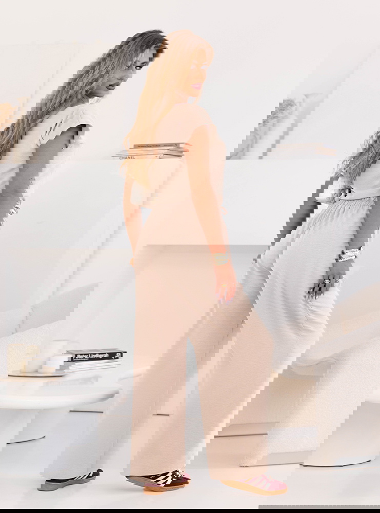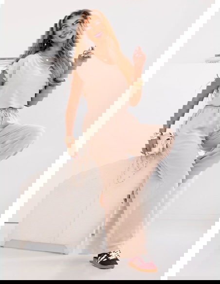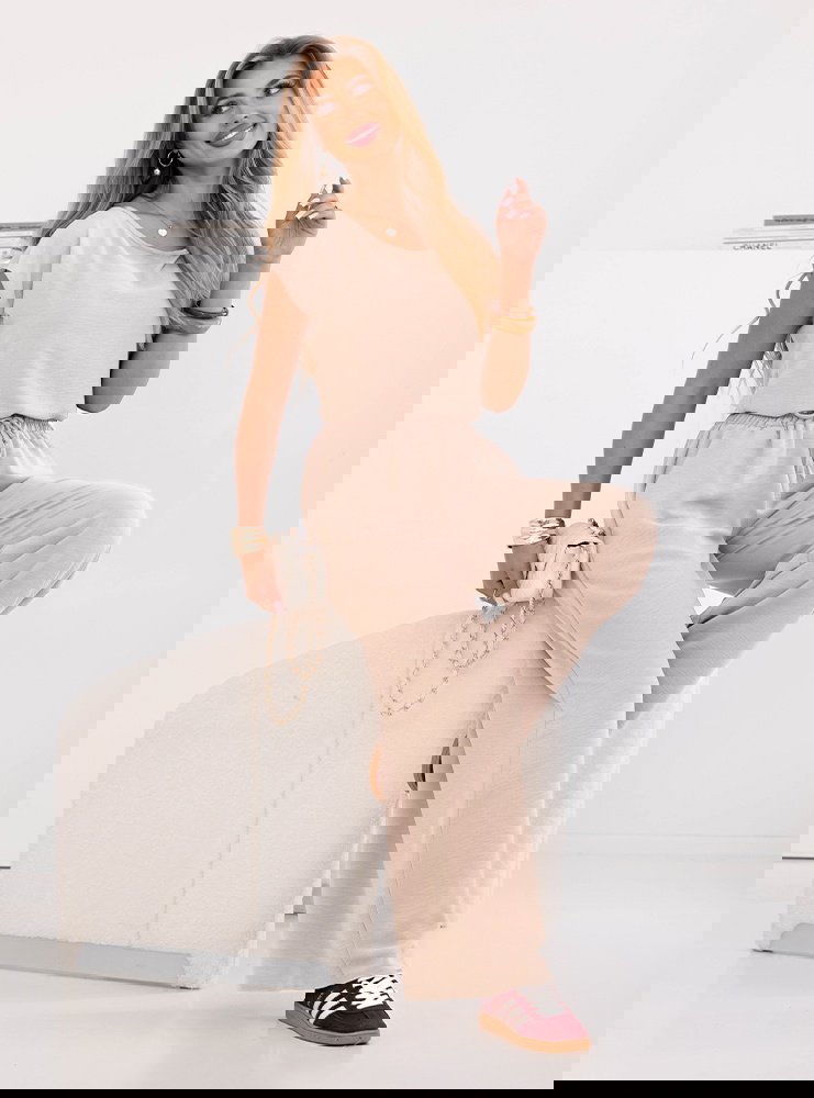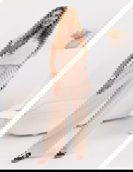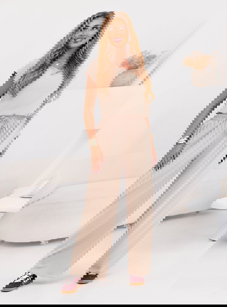 Beżowy komplet bluzka z krótkim rękawem i spodnie Sonnie