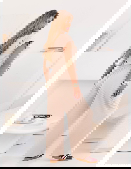 Beżowy komplet bluzka z krótkim rękawem i spodnie Sonnie to zestaw, który łączy w sobie wygodę oraz elegancką prostotę. To propozycja, która sprawia, że w jednej chwili możesz stworzyć spójną i stylową stylizację. Neutralny kolor beżu podkreśla klasyczny charakter kompletu i pozwala łatwo go zestawiać z innymi dodatkami. Bluzka z krótkim rękawem dodaje lekkości i swobody, a jednocześnie prezentuje się niezwykle schludnie. Spodnie o luźnym, prostym kroju gwarantują pełen komfort i efekt wydłużonych nóg. To idealne połączenie, które nie wymaga długiego zastanawiania się nad tym, co założyć. Wystarczy ten komplet i kilka akcesoriów, aby uzyskać gotowy, modny look. To rozwiązanie, które świetnie sprawdza się w codziennych sytuacjach, ale też pozwala wyglądać gustownie. Minimalistyczny fason sprawia, że cały zestaw jest ponadczasowy. To model, który szybko stanie się jednym z ulubionych w Twojej garderobie.