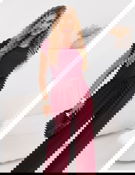 Bordowy komplet bluzka z krótkim rękawem i spodnie Sonnie