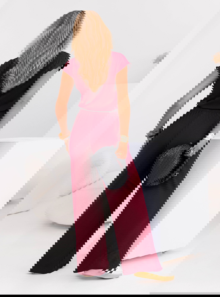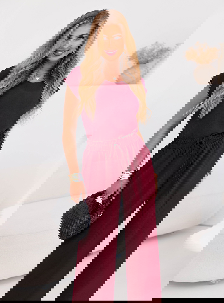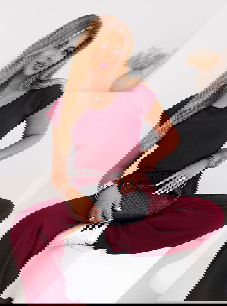 Bordowy komplet bluzka z krótkim rękawem i spodnie Sonnie to stylowa propozycja dla kobiet ceniących wygodę połączoną z elegancją. Jego głęboki, wyrazisty kolor nadaje charakteru i sprawia, że całość prezentuje się wyjątkowo. To zestaw, który świetnie podkreśla sylwetkę, a jednocześnie zapewnia pełną swobodę ruchów. Bluzka o prostym kroju z krótkim rękawem wprowadza lekkość i uniwersalność. Spodnie z szerokimi nogawkami gwarantują efektowny wygląd i komfort. Razem tworzą zestaw, który wyróżnia się spójnością i nowoczesnym charakterem. To propozycja, która daje wiele możliwości stylizacyjnych. Można ją uzupełnić zarówno eleganckimi dodatkami, jak i bardziej codziennymi akcesoriami. Dzięki temu komplet stanie się jednym z najbardziej praktycznych elementów Twojej garderoby. To połączenie prostoty i wyrazistości, które zawsze robi świetne wrażenie.