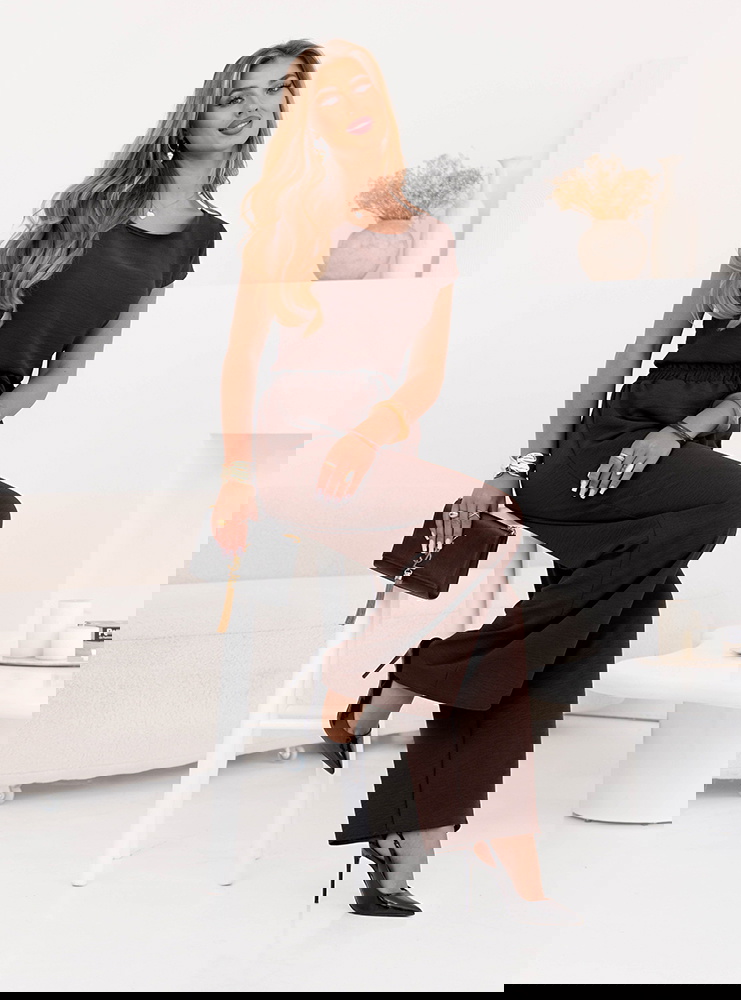 Czekoladowy komplet bluzka z krótkim rękawem i spodnie Sonnie to stylizacja, która od pierwszego momentu zachwyca swoim wyrazistym charakterem. Głęboki kolor nadaje całości elegancji i subtelnej klasy. To zestaw, który podkreśla kobiecość, a jednocześnie daje poczucie komfortu. Prosta bluzka z krótkim rękawem stanowi uniwersalną bazę do wielu stylizacji. Szerokie spodnie dodają nowoczesnego sznytu i prezentują się niezwykle efektownie. Dzięki spójności kroju całość wygląda harmonijnie i stylowo. To komplet, który łatwo dostosujesz do różnych okazji. Wystarczy kilka dodatków, aby zmienić jego charakter na bardziej elegancki lub casualowy. To rozwiązanie, które pozwoli Ci zawsze wyglądać modnie i z klasą. To także świetna propozycja dla kobiet, które cenią ponadczasową prostotę z nutą wyrazistości.