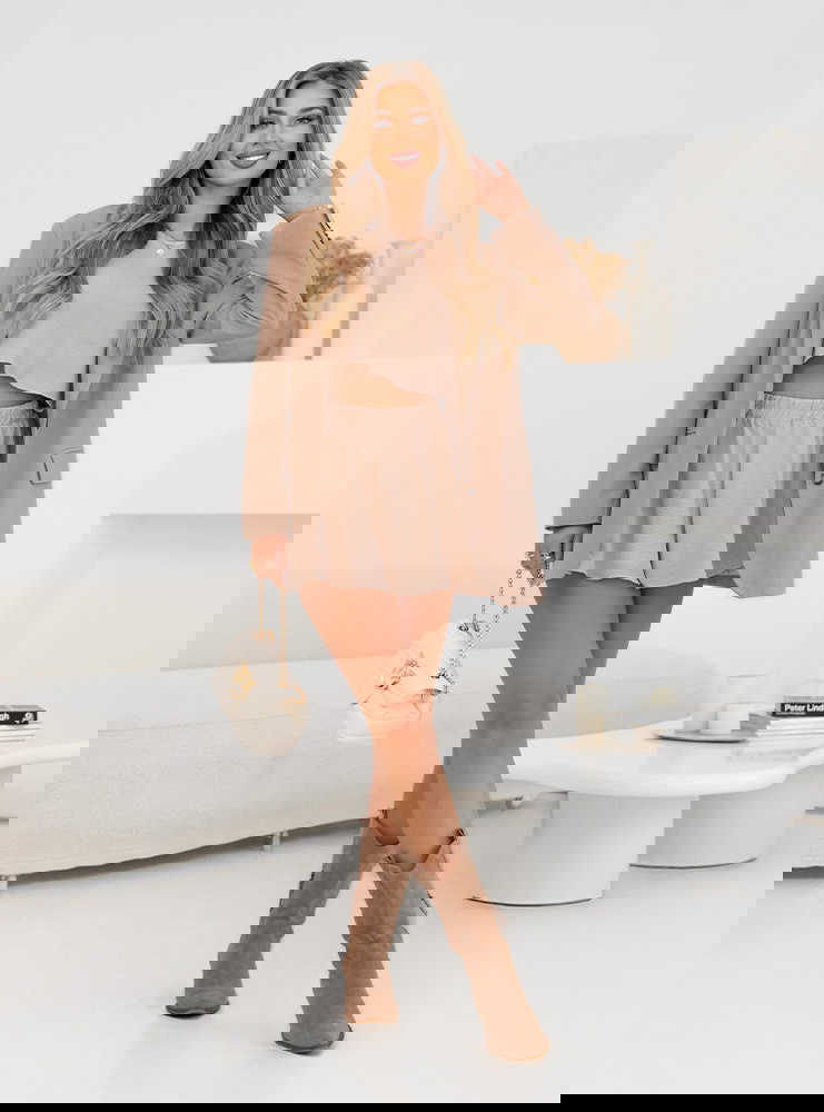 Beżowy komplet bluzka i spodenki Ymir to idealna propozycja dla kobiet, które cenią sobie wygodę połączoną z modnym wyglądem. Ten zestaw to kwintesencja prostoty i stylu, która sprawdza się w wielu sytuacjach. Krótka bluzka o luźnym kroju podkreśla lekkość i nadaje całości dziewczęcego charakteru. Spodenki z elastycznym pasem zapewniają komfort i swobodę ruchów. Neutralny beżowy kolor sprawia, że komplet prezentuje się elegancko i uniwersalnie. To zestaw, który nie potrzebuje wielu dodatków, aby wyglądać efektownie. Minimalistyczny fason pozwala na eksperymentowanie z akcesoriami i butami. Dzięki temu możesz stworzyć zarówno bardziej codzienny, jak i nieco elegantszy look. To propozycja, która szybko stanie się niezastąpionym elementem w Twojej garderobie.