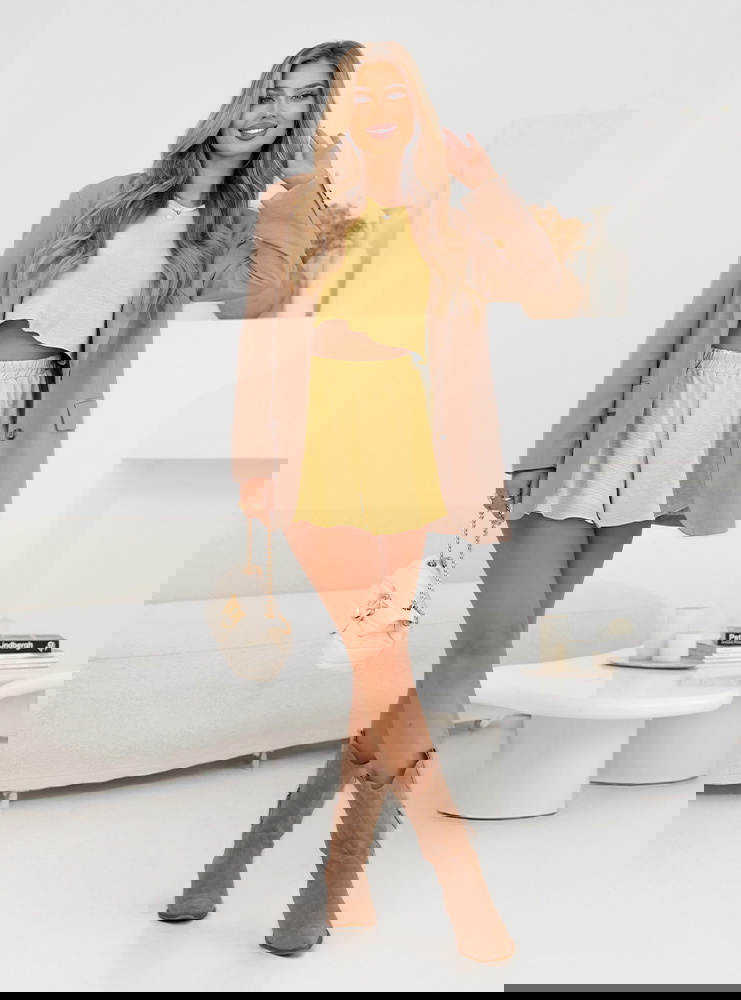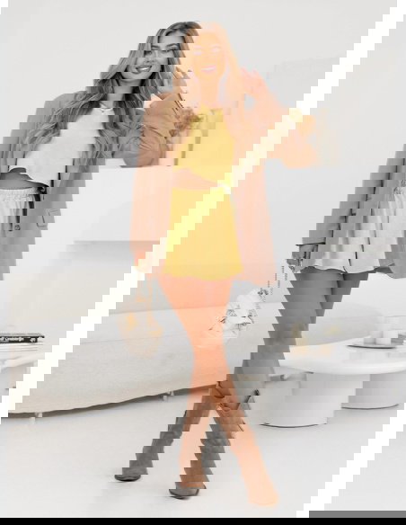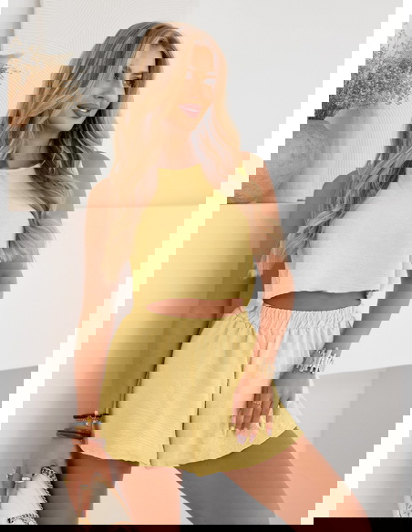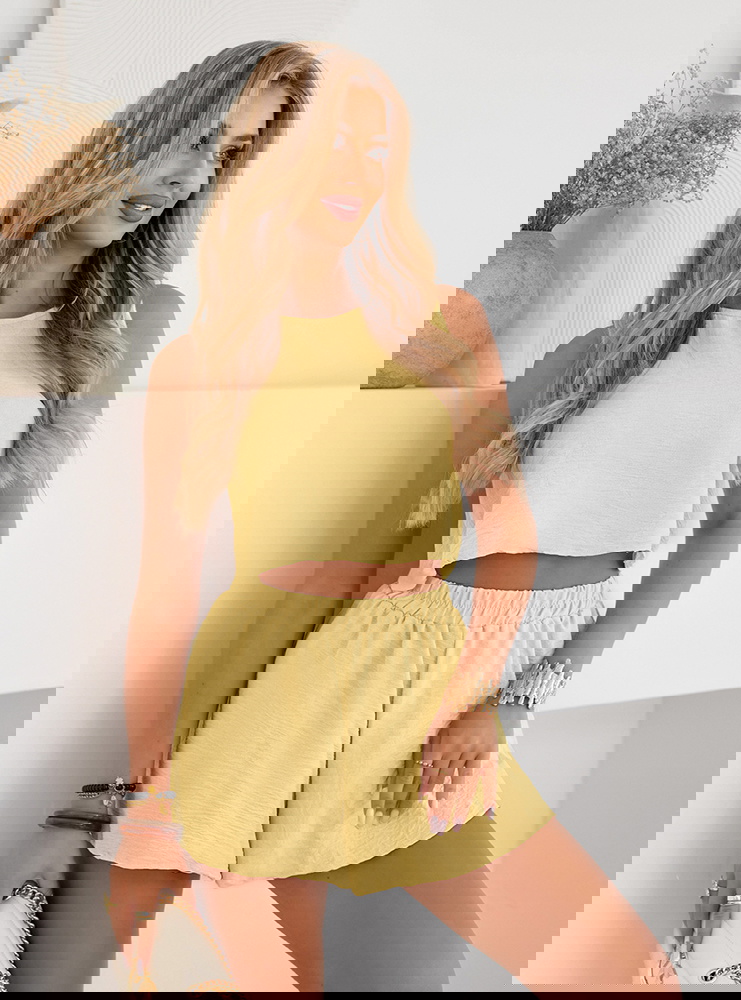 Komplet bluzka i spodenki Ymir - masełkowy to propozycja, która od razu przyciąga uwagę swoim świeżym, subtelnym odcieniem. To zestaw, który łączy w sobie wygodę i kobiecy urok, tworząc stylizację pełną lekkości. Prosta forma sprawia, że całość prezentuje się niezwykle nowocześnie, a zarazem ponadczasowo. Bluzka o klasycznym kroju i krótszej długości dodaje charakteru, a spodenki z elastycznym pasem podkreślają komfort noszenia. Ten komplet to doskonała baza do tworzenia wielu różnorodnych zestawów. Jego uniwersalny charakter pozwala na dopasowanie dodatków w dowolnym stylu – eleganckim, sportowym czy casualowym. To model, który pozwoli poczuć się modnie bez nadmiernego wysiłku. Delikatny masełkowy kolor dodaje świeżości i sprawia, że stylizacja nabiera wyjątkowego uroku. To wybór idealny dla kobiet ceniących prostotę i efektowny wygląd w jednym. Z tym kompletem każda stylizacja będzie wyglądać modnie i spójnie.