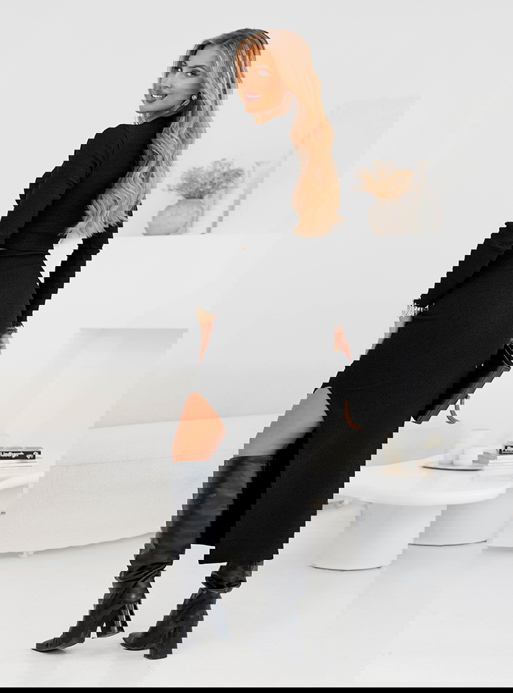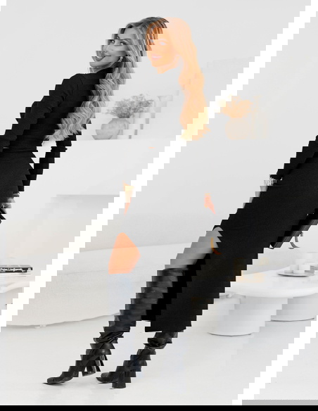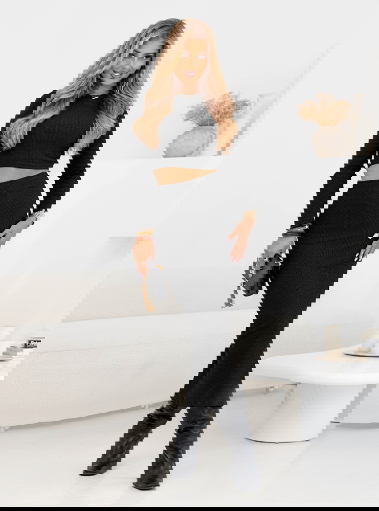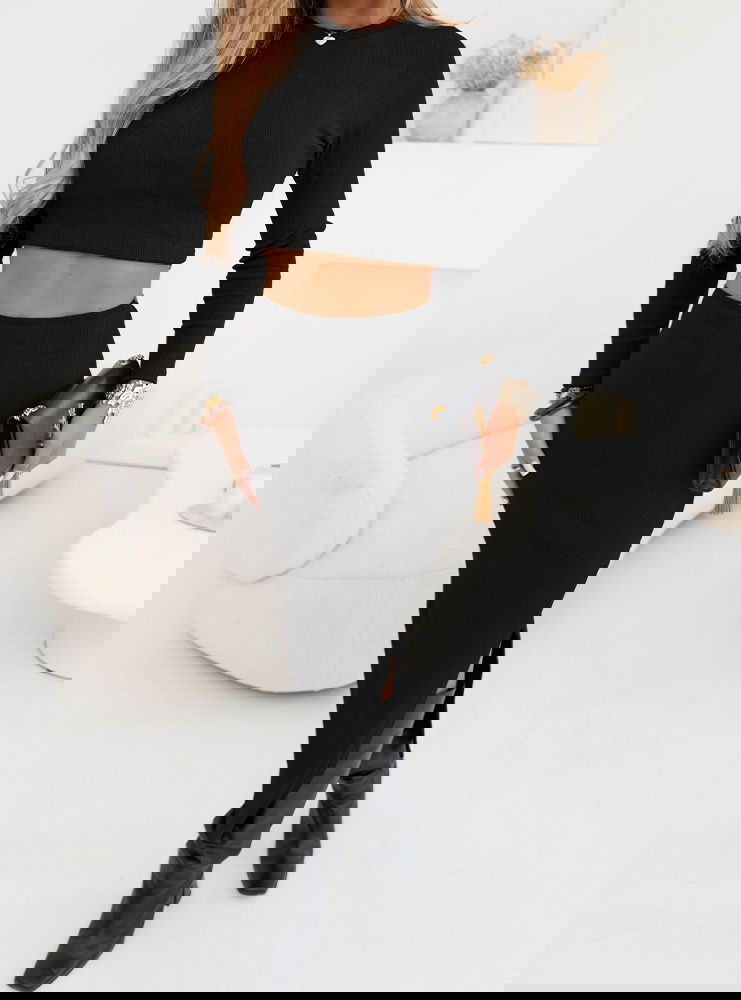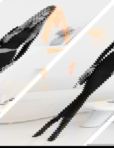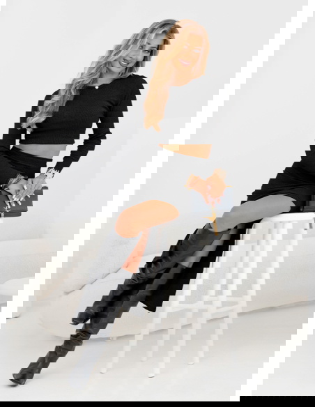 Czarny prążkowany komplet top+spódnica z rozcięciem Hyuna to propozycja, która łączy elegancję z nowoczesnym stylem. To zestaw, który od razu przyciąga uwagę i podkreśla kobiecą sylwetkę. Top o dopasowanym kroju akcentuje linię talii, a długi rękaw dodaje całości szyku. Spódnica midi z rozcięciem pięknie wydłuża nogi i nadaje stylizacji zmysłowego charakteru. Czarny kolor sprawia, że komplet prezentuje się niezwykle uniwersalnie i ponadczasowo. To model, który można nosić zarówno na wyjątkowe okazje, jak i w bardziej codziennych stylizacjach. Dzięki swojej prostocie i wyraźnym detalom wygląda efektownie bez konieczności stosowania wielu dodatków. To idealny wybór dla kobiet, które lubią klasykę w nowoczesnym wydaniu.