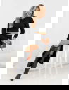Czarny prążkowany komplet top+spódnica z rozcięciem Hyuna świetnie sprawdzi się na wieczorne wyjścia czy spotkania w gronie znajomych. To doskonały wybór na randkę, gdzie podkreśli kobiecy wdzięk.