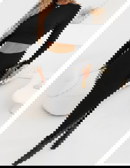 Czarny prążkowany komplet top+spódnica z rozcięciem Hyuna