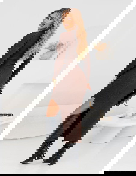 Czekoladowy prążkowany komplet top+spódnica z rozcięciem Hyuna to wyjątkowa propozycja dla kobiet, które lubią połączenie elegancji i nowoczesnego stylu. Głęboki, czekoladowy odcień nadaje całości klasy i wyrazistości. Dopasowany krój pięknie podkreśla sylwetkę, a prążkowana faktura dodaje całości charakteru. Krótki top z długim rękawem zestawiony ze spódnicą midi tworzy spójną i efektowną całość. Rozcięcie w spódnicy nadaje stylizacji zmysłowości i lekkości. To komplet, który doskonale łączy kobiecość i wygodę. Dzięki niemu stworzysz look, który podkreśli Twoją pewność siebie. To propozycja, która sprawdzi się w wielu okolicznościach, dodając Ci elegancji. Całość wygląda stylowo i nowocześnie, a jednocześnie zachwyca prostotą. To komplet, który stanie się mocnym punktem każdej garderoby.