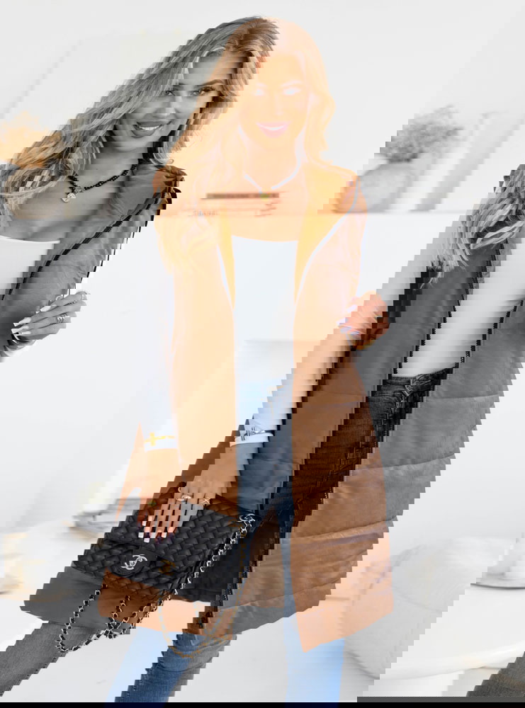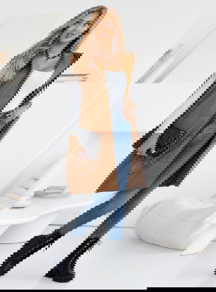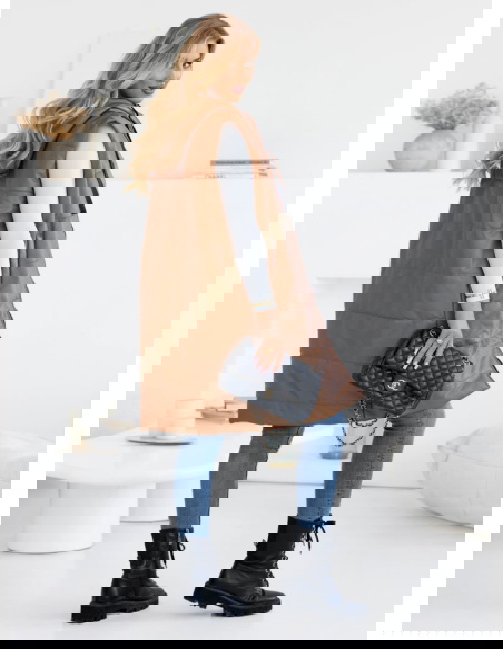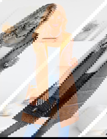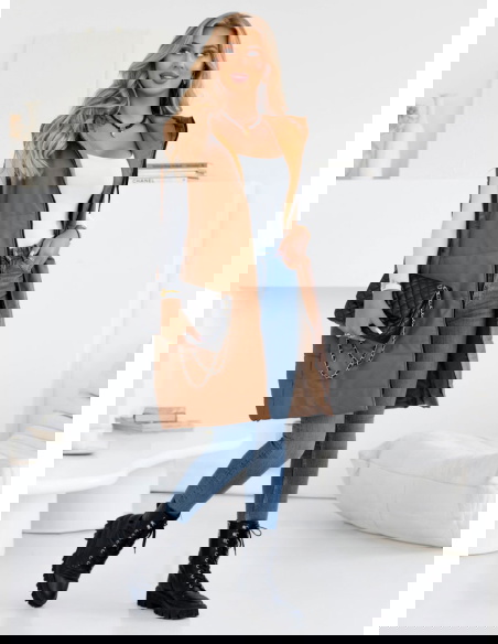 Długa kamizelka z eko skóry Doryda - mocha mousse
