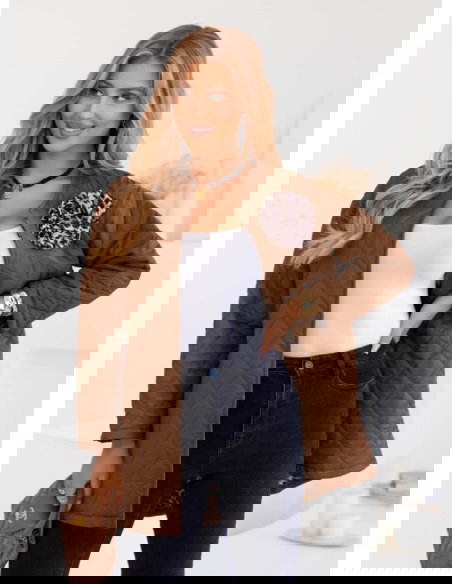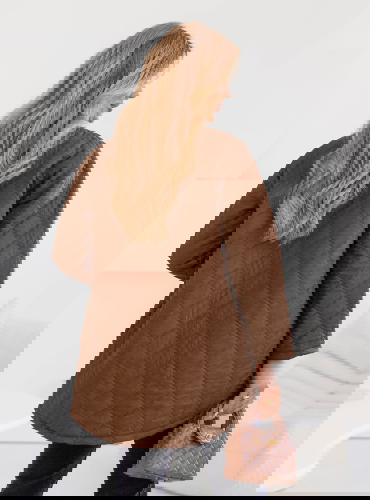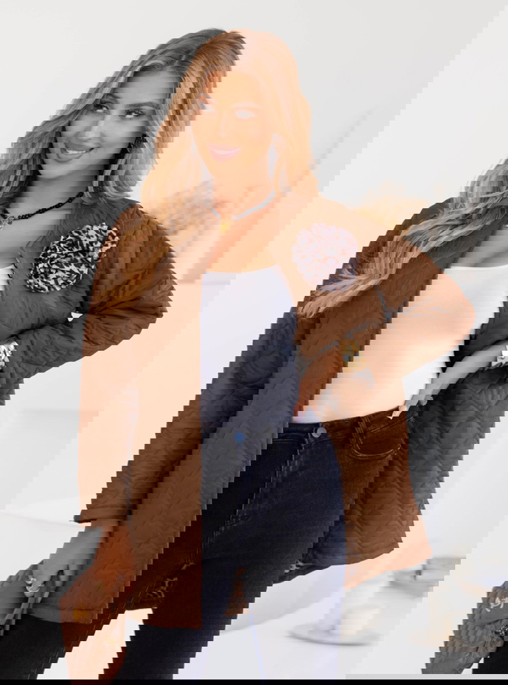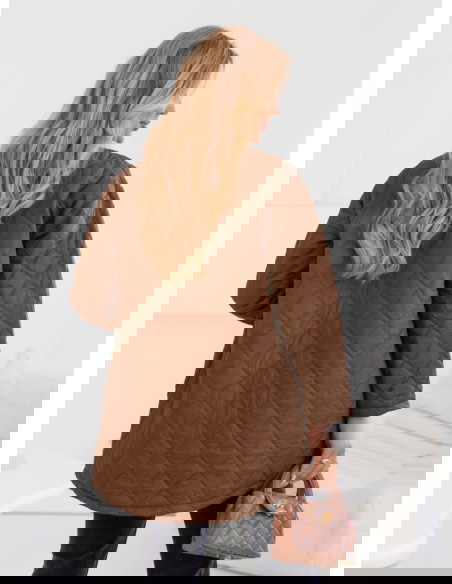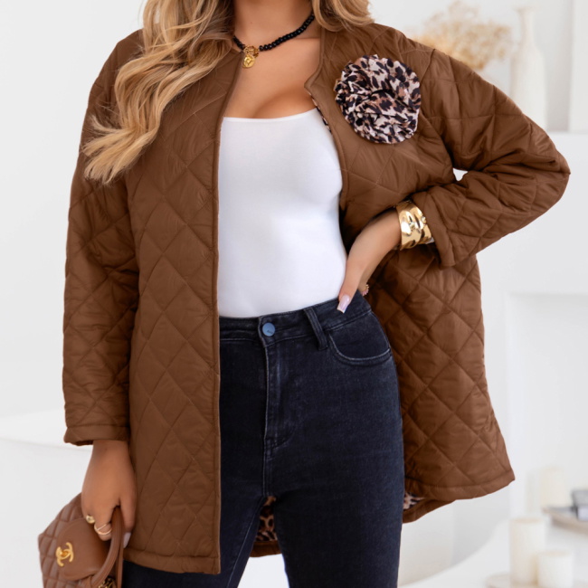 Pikowana kurtka z ozdobną broszką w kształcie róży Ronella - mocha mousse
