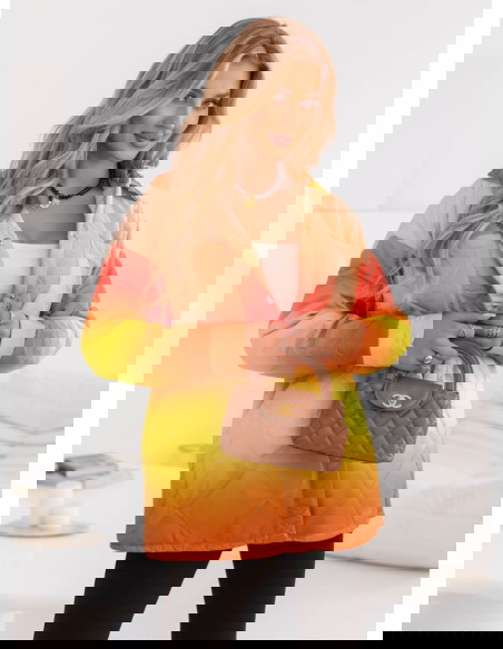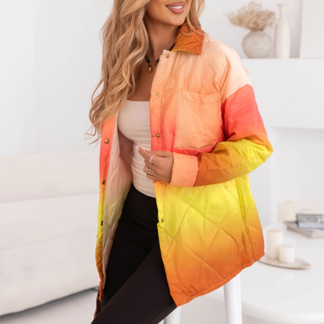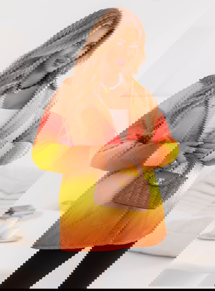 Kolorowa pikowana kurtka Rypsyma - wzór 3 to model, który od razu przyciąga spojrzenia swoją energią i wyjątkowym charakterem. To propozycja dla kobiet, które lubią podkreślać swój indywidualny styl i nie boją się odważnych rozwiązań. Intensywne barwy przenikające się w efektownym ombre nadają kurtce nowoczesnego, dynamicznego wyglądu. Pikowany wzór dodaje całości lekkości i sprawia, że prezentuje się niezwykle modnie. To kurtka, która doskonale przełamuje klasyczne stylizacje, nadając im świeżości. Z łatwością podnosi charakter nawet najprostszego zestawu. Jej wyrazisty design sprawia, że staje się centralnym punktem stylizacji. To model, który pozwala poczuć się pewnie i wyróżnić się w tłumie. Dzięki niej Twoje stylizacje nabiorą nowego, wyjątkowego wymiaru. To propozycja pełna życia i modowego charakteru.