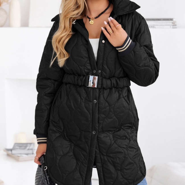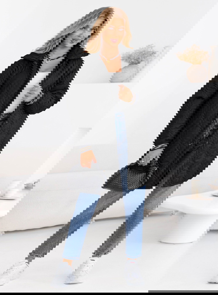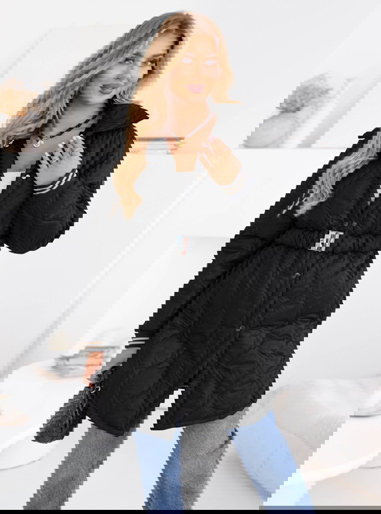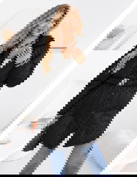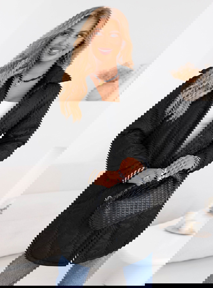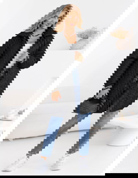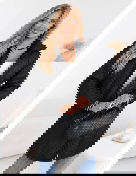 Czarny pikowany płaszcz z paskiem Emerli