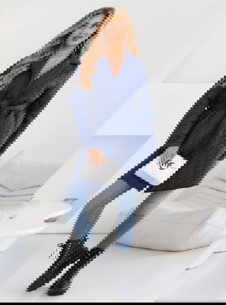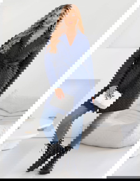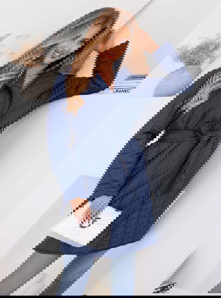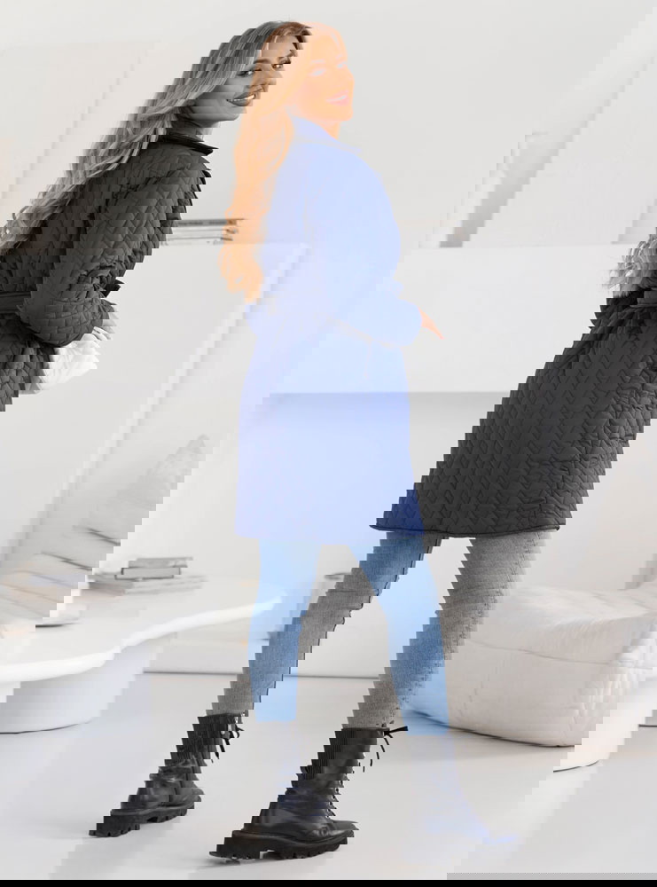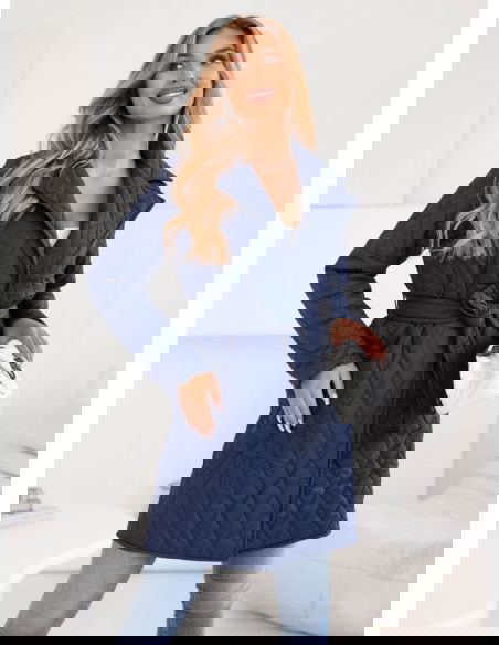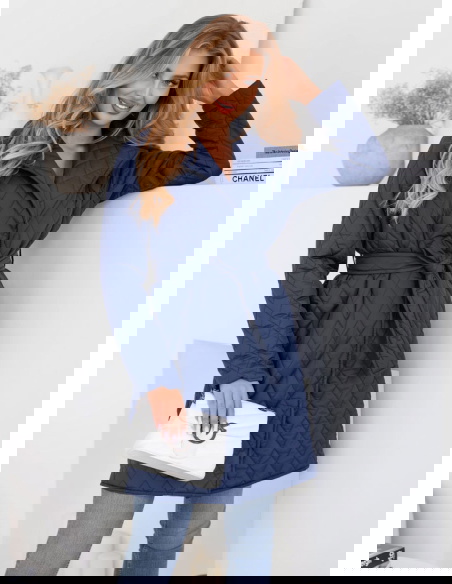 Granatowy płaszcz pikowany z paskiem Pernette to esencja elegancji i klasy. Granatowy kolor nadaje mu uniwersalności i ponadczasowego uroku.