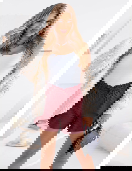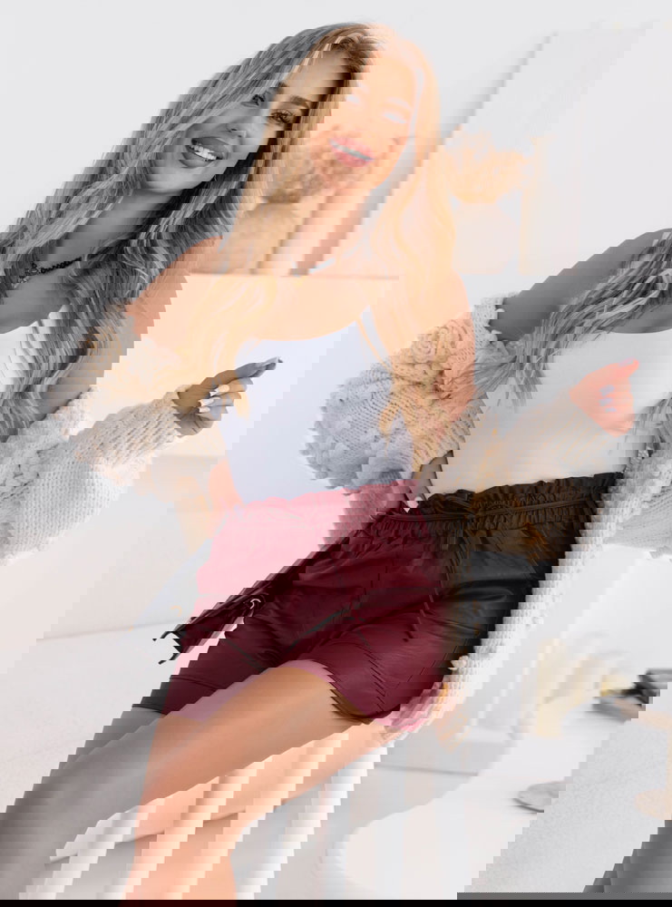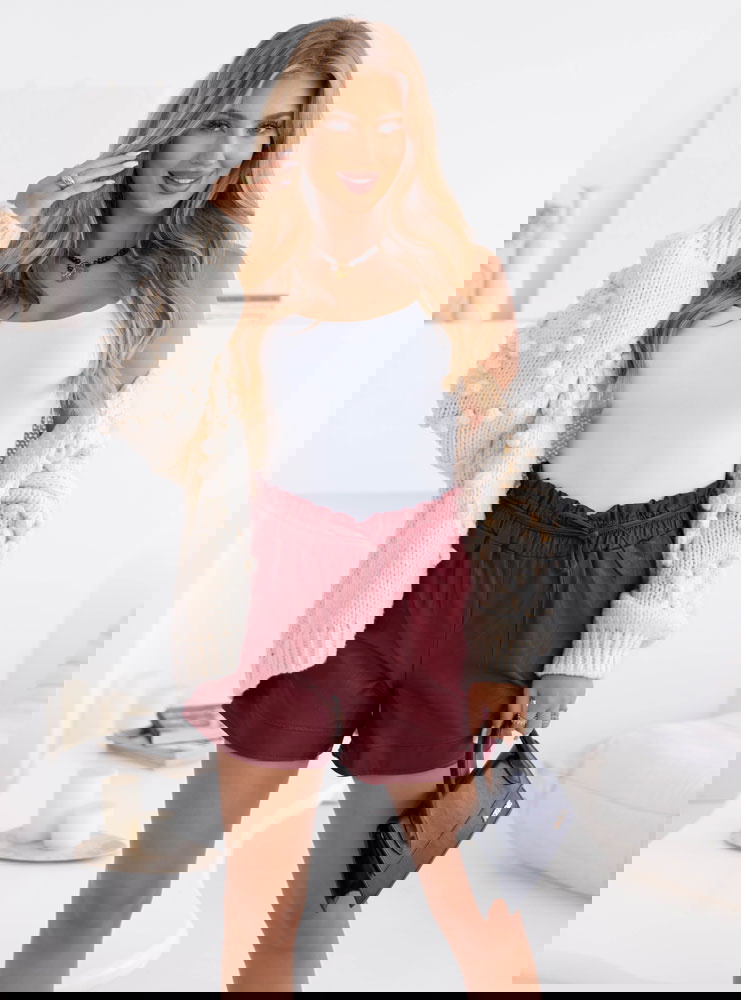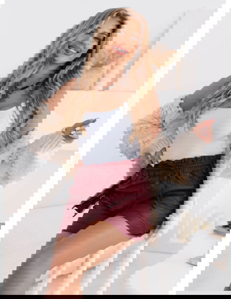 Bordowe szorty z eko skóry Blythe to propozycja, która doskonale łączy nowoczesny wygląd z kobiecym charakterem. Ich intensywny kolor dodaje stylizacji wyrazistości i elegancji. To model, który świetnie podkreśla figurę, jednocześnie zapewniając wygodę noszenia. Dzięki swojej formie prezentują się niezwykle stylowo i stanowią mocny akcent w każdej stylizacji. Subtelne marszczenie w pasie dodaje im lekkości i dziewczęcego wdzięku. To szorty, które można łatwo dopasować do różnych elementów garderoby. Sprawdzą się zarówno w prostych, jak i bardziej efektownych zestawach. To produkt, który od razu zwraca uwagę i nadaje całości świeżego charakteru. Jeśli lubisz wyglądać modnie, a zarazem czuć się komfortowo, ten model jest dla Ciebie.