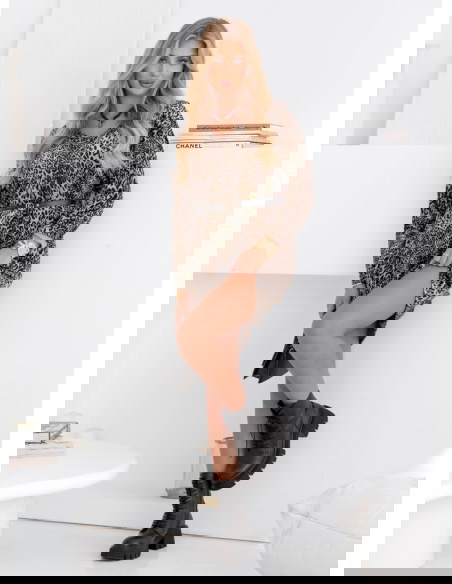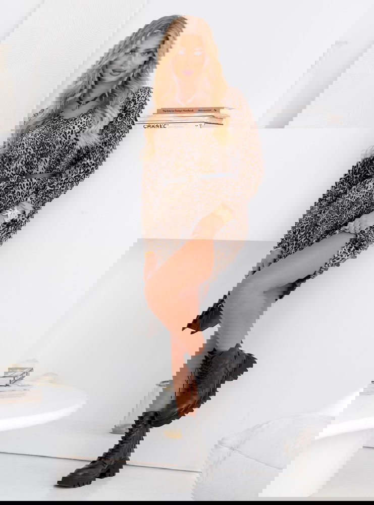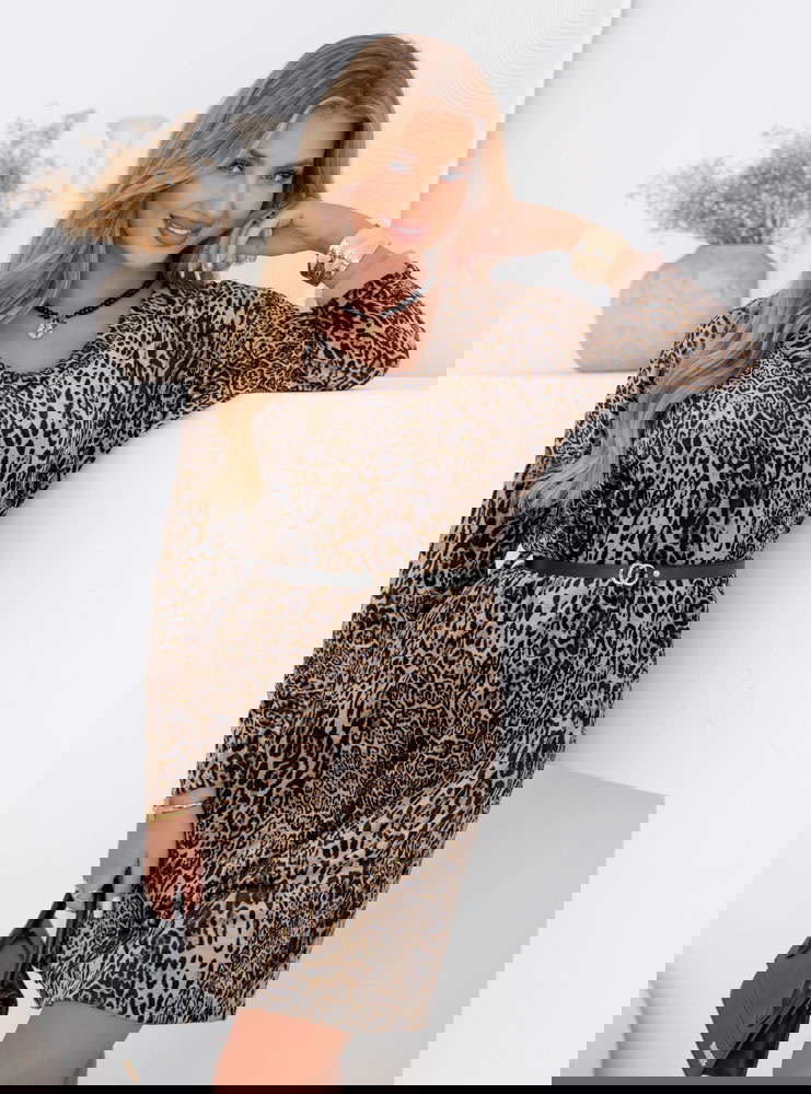 Welurowa sukienka w panterkę z paskiem Nethra - wzór 3 to propozycja, która emanuje kobiecością i pewnością siebie. Jej wzór w panterkę dodaje całości wyrazistości i charakteru. To model, który pozwoli Ci poczuć się wyjątkowo i zwrócić na siebie uwagę. Sukienka podkreśla sylwetkę, a jednocześnie zapewnia pełen komfort noszenia. Pasek w talii pięknie akcentuje kobiece kształty i nadaje całości proporcji. To ubranie, które łączy w sobie odrobinę drapieżności z elegancją. Dzięki niej możesz stworzyć stylizację, która podkreśli Twój indywidualny styl. To sukienka, która idealnie sprawdzi się w garderobie kobiet lubiących odważniejsze wzory. Jej ponadczasowy print sprawia, że nigdy nie wychodzi z mody. To wybór, który doda Twoim stylizacjom odwagi i szyku.