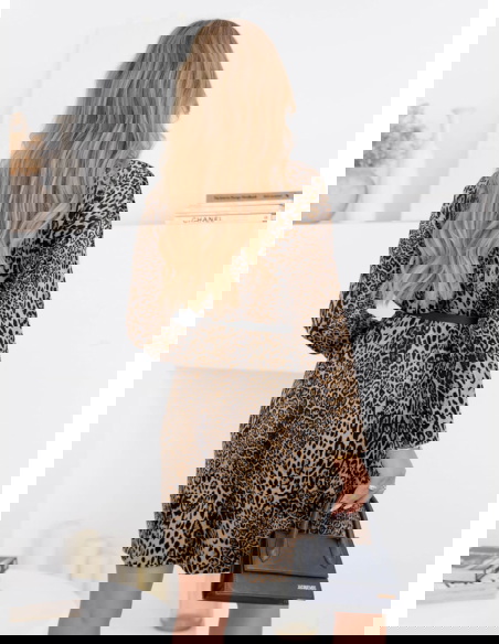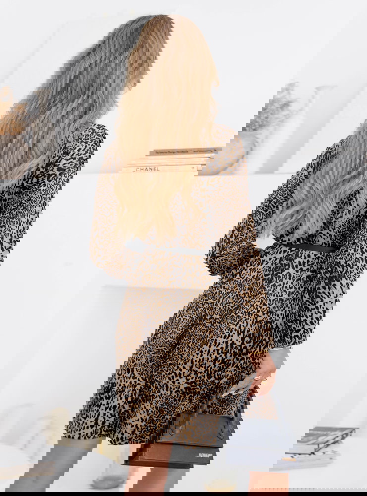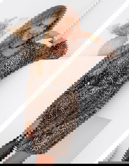Welurowa sukienka w panterkę z paskiem Nethra - wzór 3