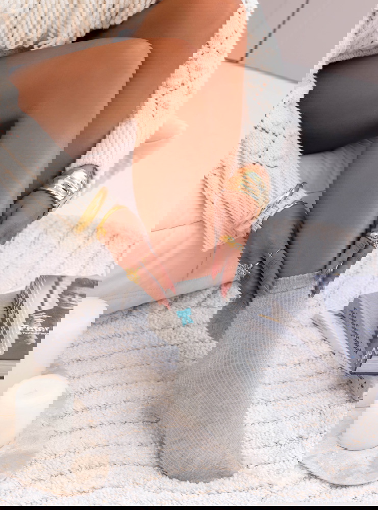 Szare skarpetki z naszywką w kształcie kokardki Lorlean sprawdzą się na co dzień, jako uroczy dodatek do codziennych stylizacji. Doskonale pasują do sportowych zestawów z jeansami i sneakersami.